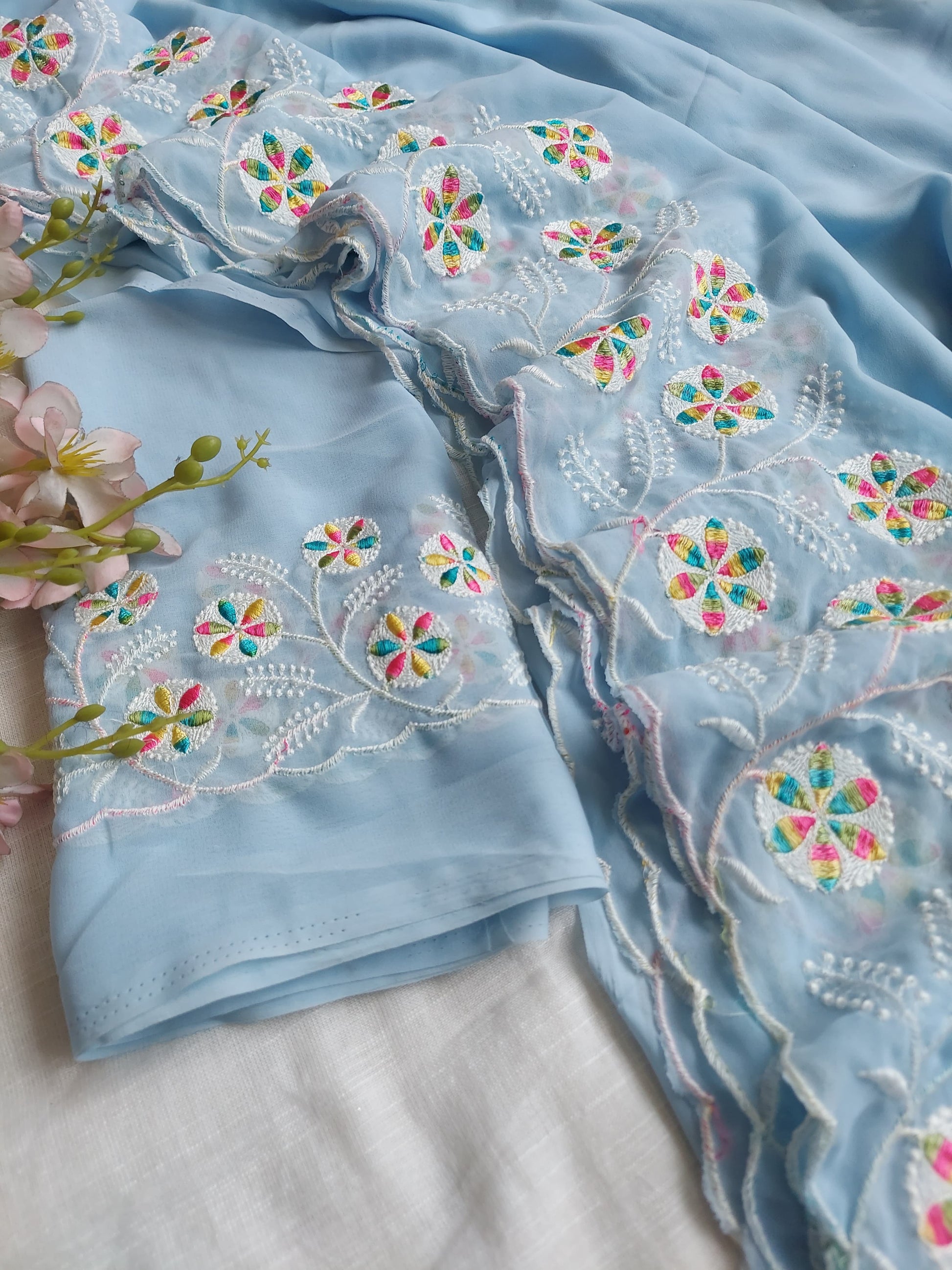 - Saree Fabric: Blooming Heavy Georgette with Heavy Multi Embroidery Work