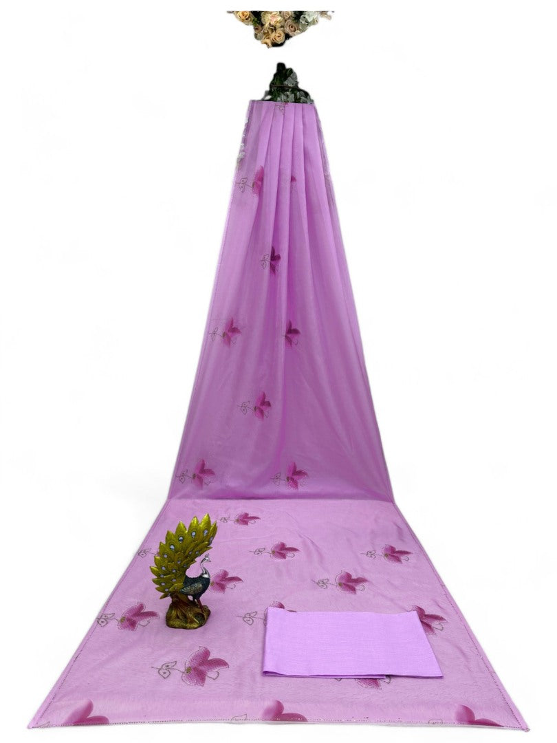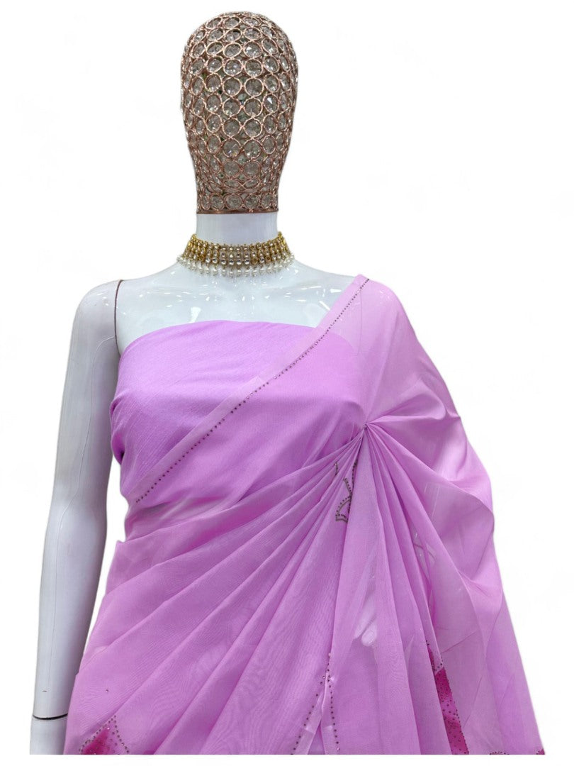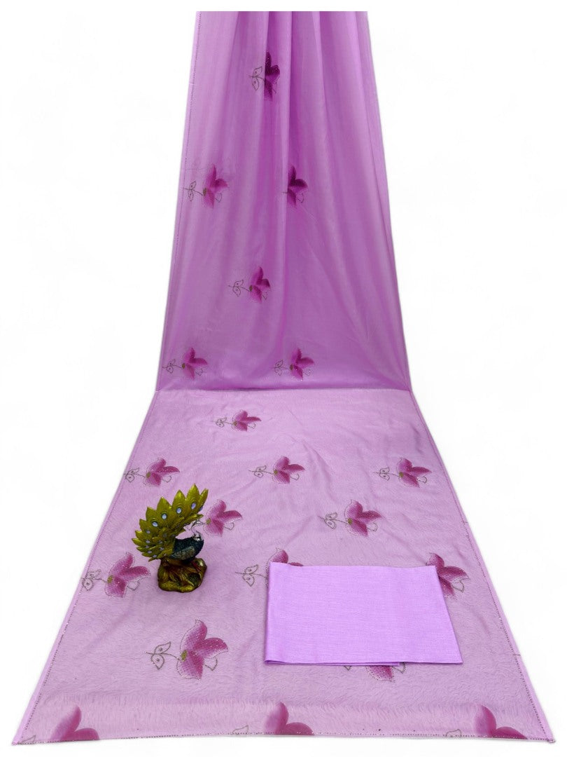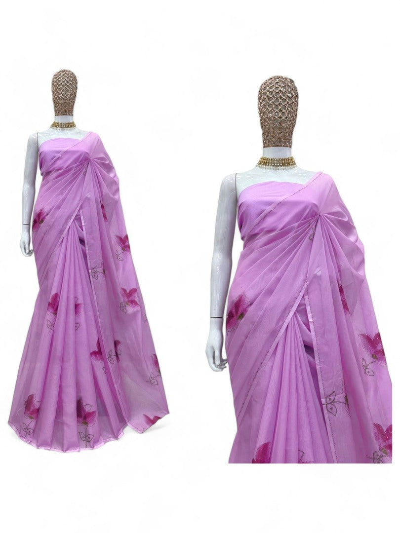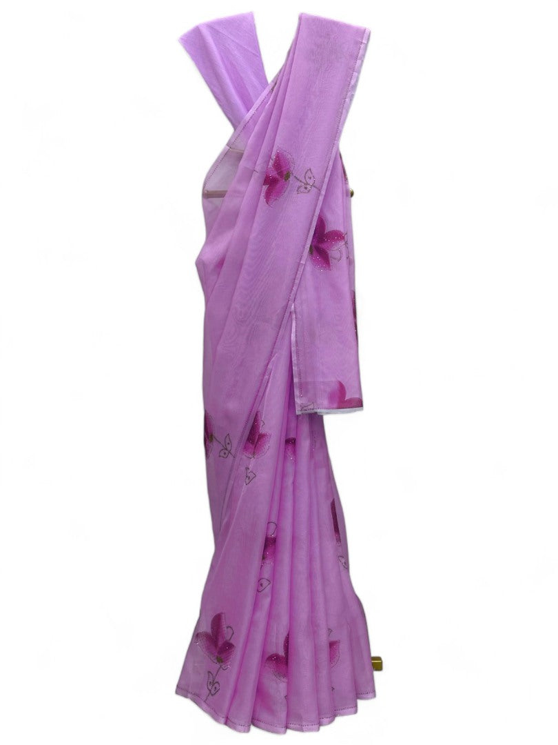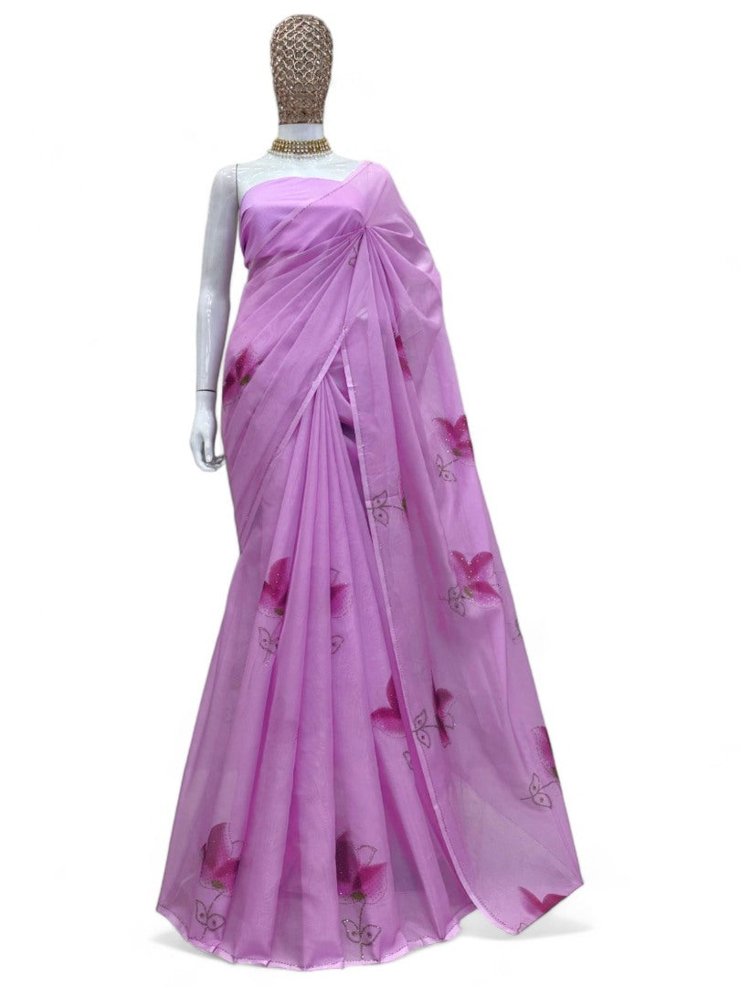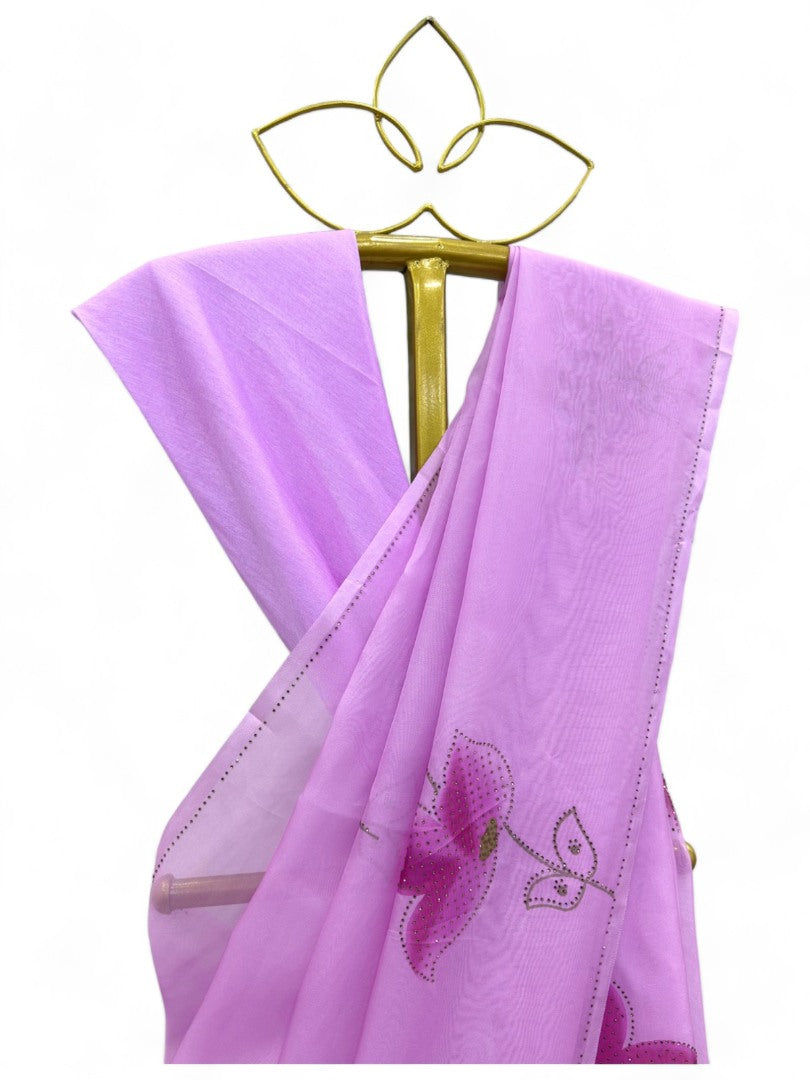 Enhance your wardrobe with the ethereal charm of the Lavender Organza Floral Print Saree. Crafted from luxurious Organza Silk, this saree features exquisite floral prints that exude elegance and grace. Adorned with intricate Hot Fix detailing and Digital Print, it adds a touch of sophistication to any occasion. The saree comes with a matching Benglori Silk blouse piece, perfect for completing your ensemble. Elevate your style quotient and make a statement at weddings, parties, or festive gatherings with this mesmerizing Lavender saree. Shop now for the perfect blend of tradition and contemporary flair, and step out in unparalleled style!