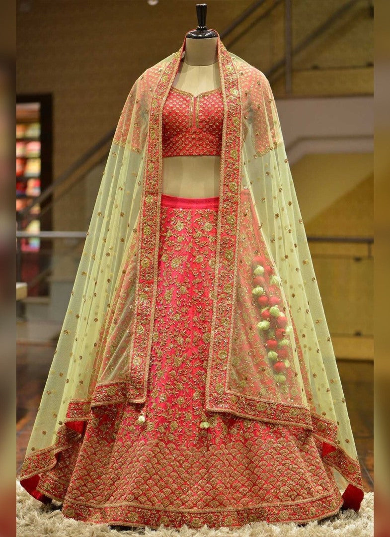 Magento red two tone silk heavy embroidered brial lehenga choli