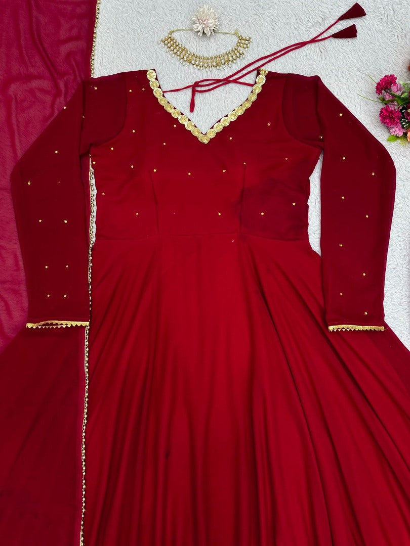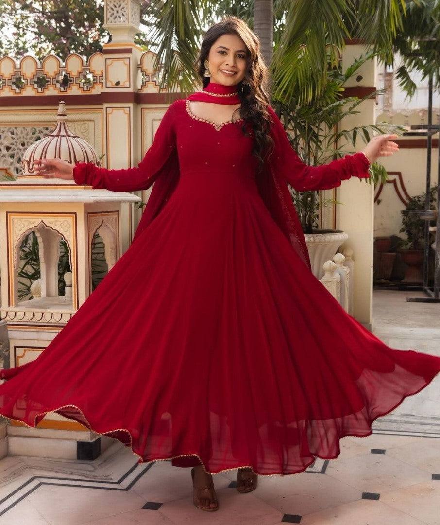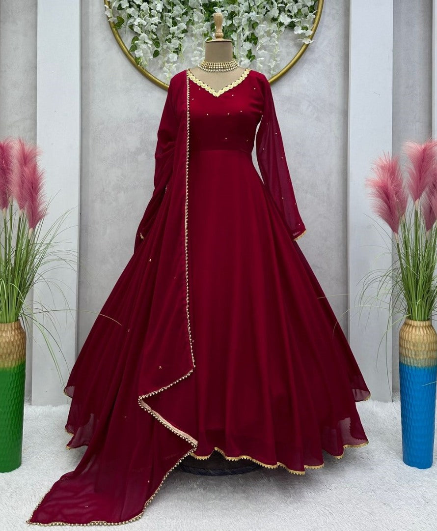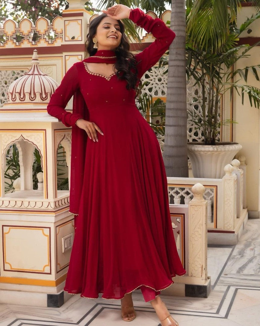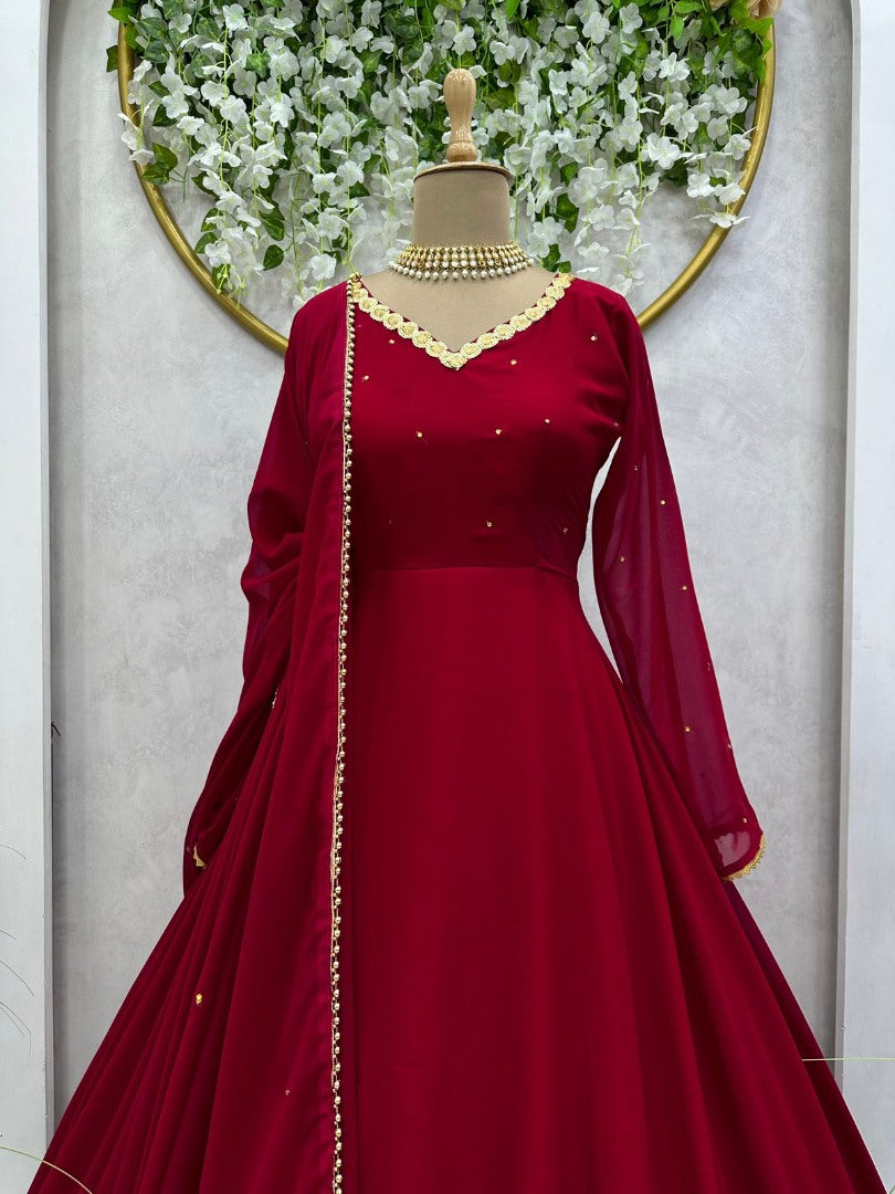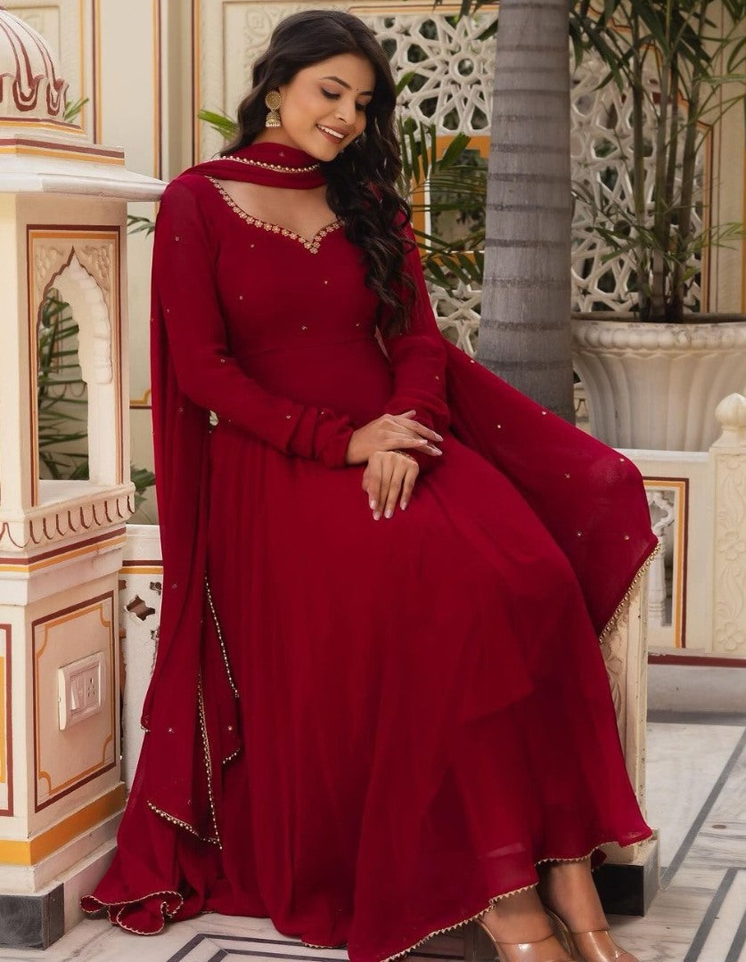 Maroon georgette party wear anarkali suit -