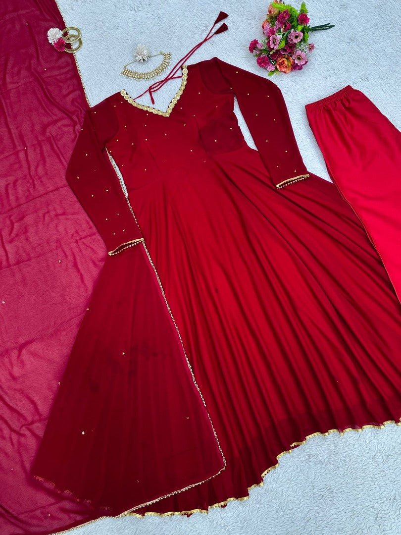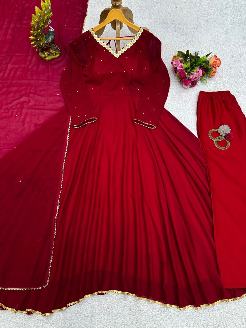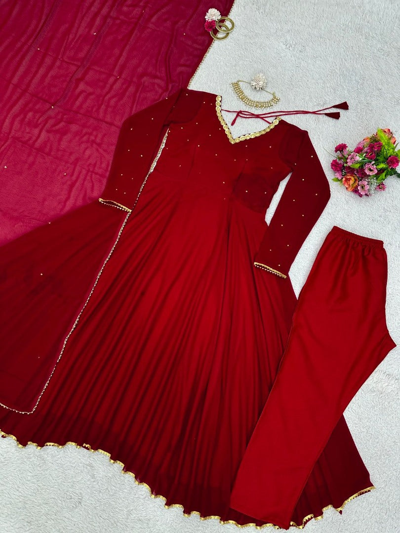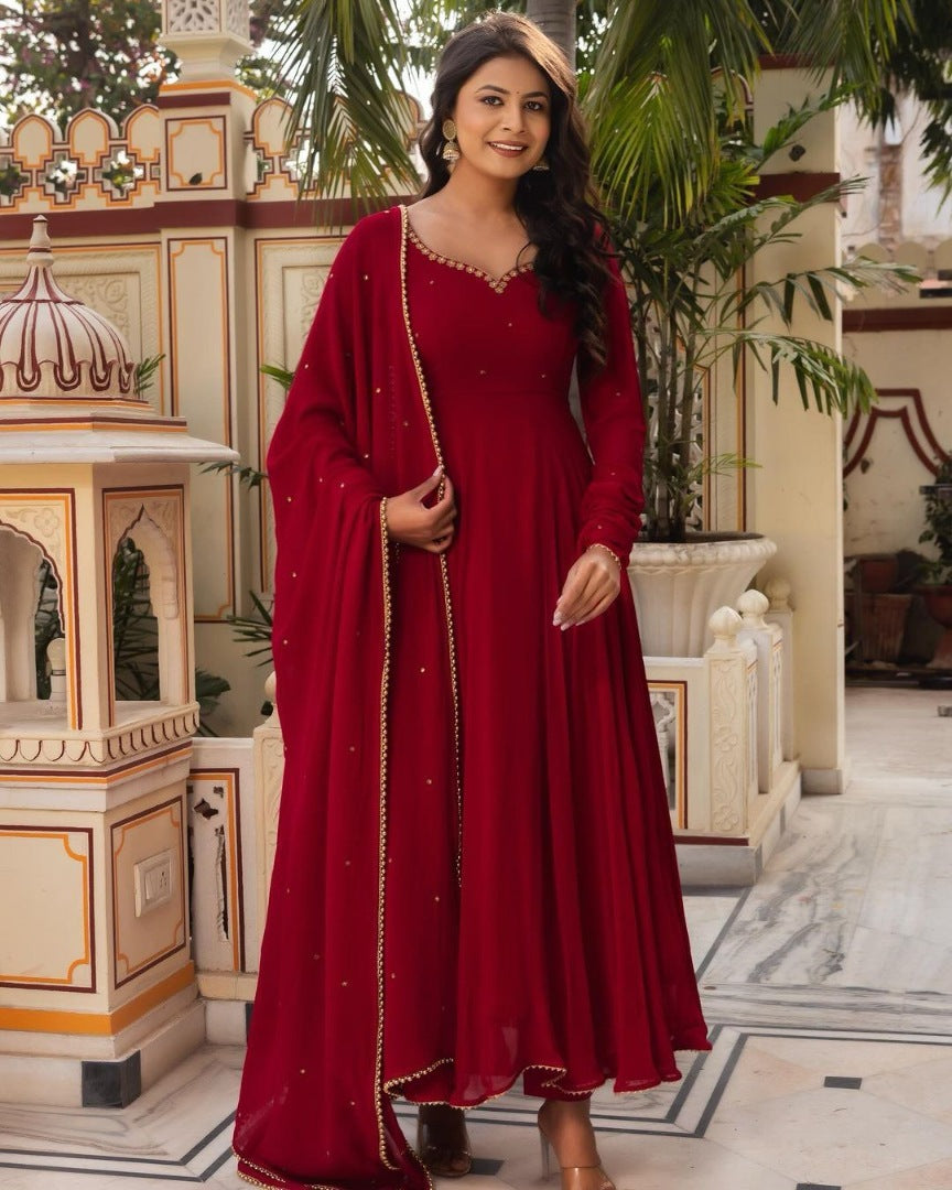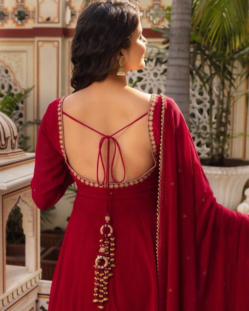 Maroon georgette party wear anarkali suit