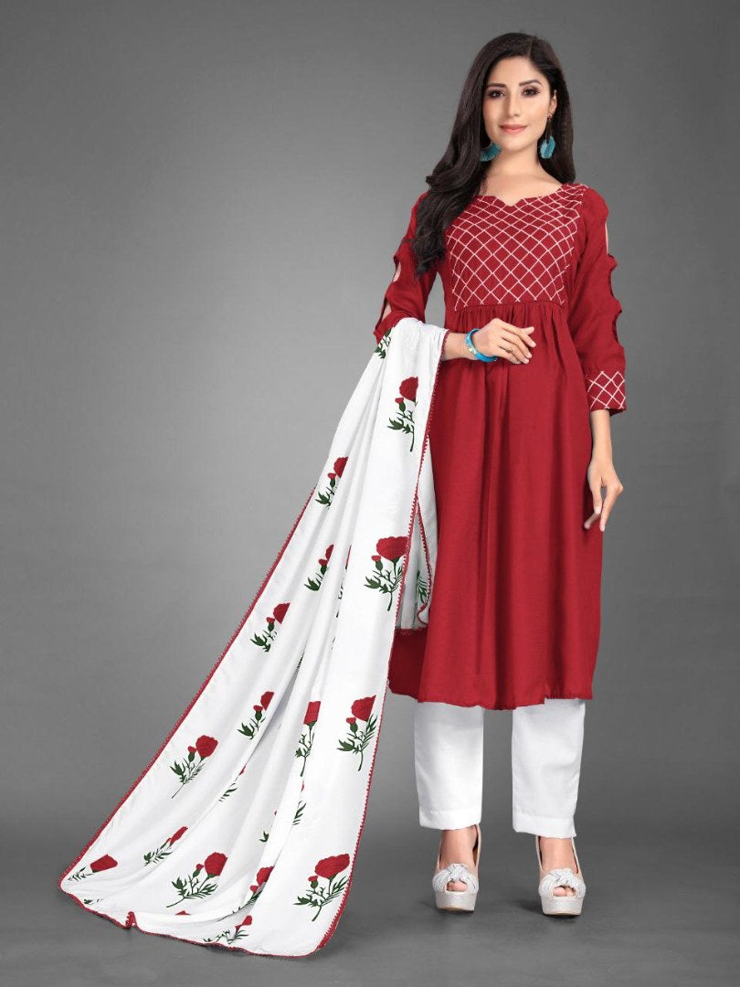 Maroon heavy cotton kurti with printed dupatta