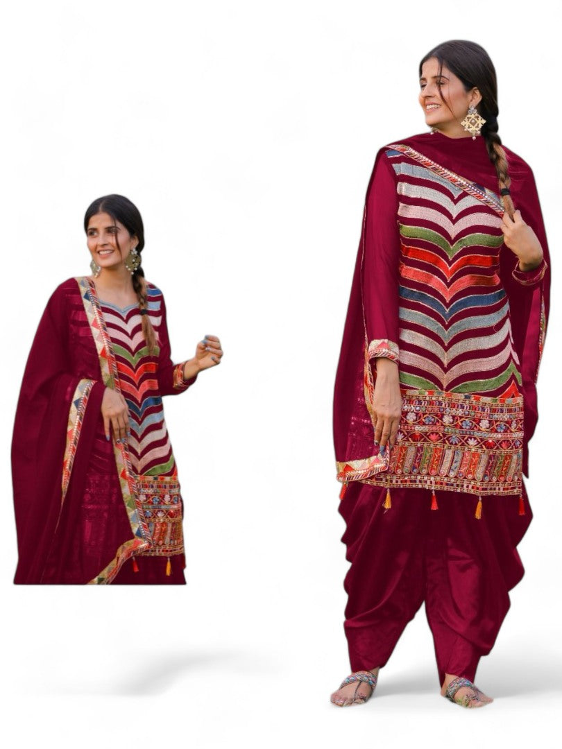 Dupatta - Heavy Fox Georgette With Embroidery Sequence With Mirror Work Lace Border