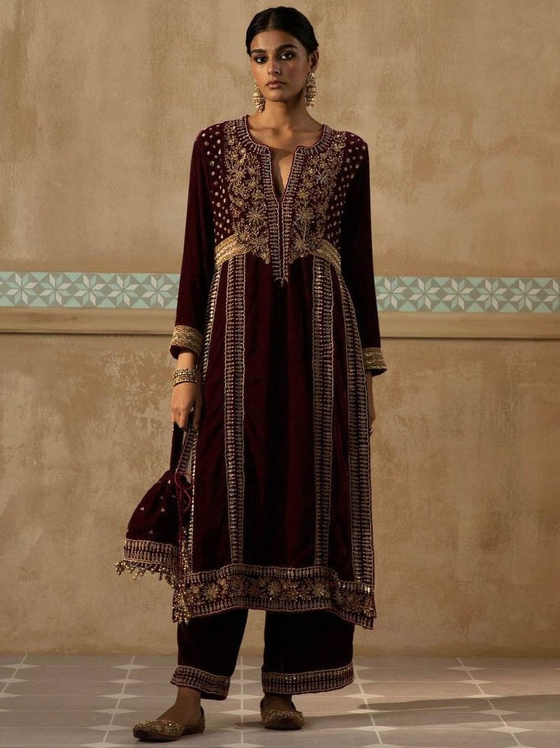 Plazzo: Heavy 9000 Velvet With Zari Embroidery Work (Fully Stitched)