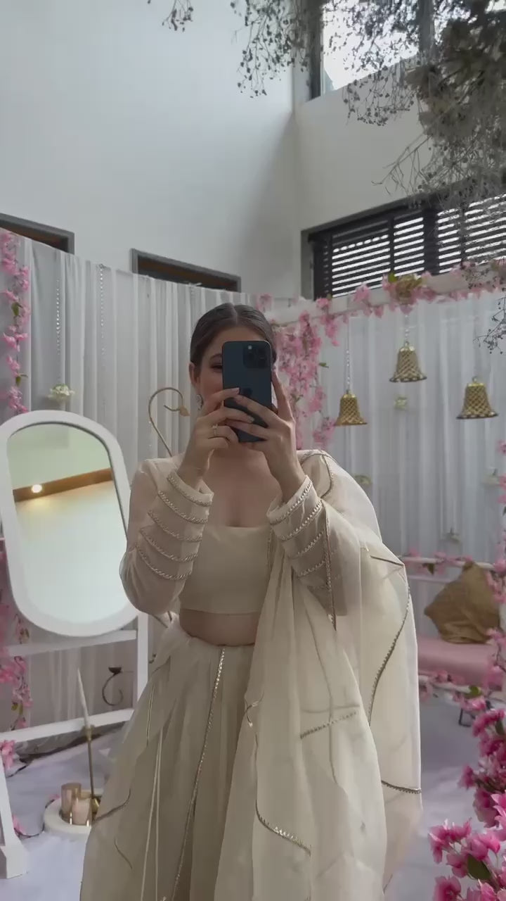This exquisite lehenga choli is perfect for weddings and special ceremonies, combining the timeless elegance of organza with intricate lace detailing for a stunning and refined look.