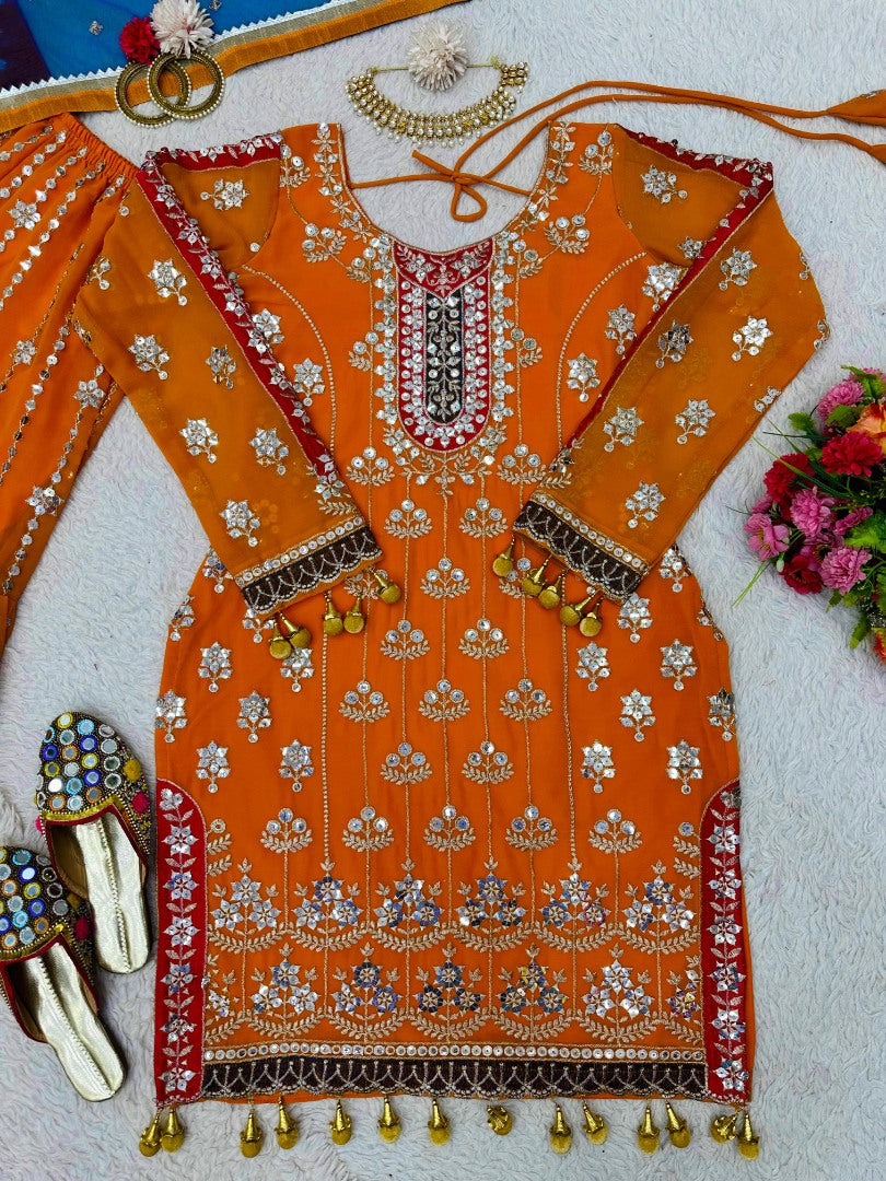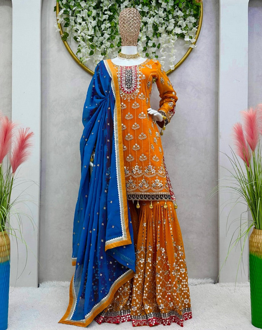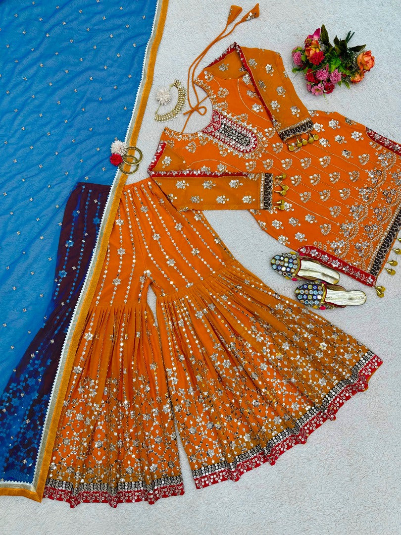 Orange heavy work designer wedding sharara suit