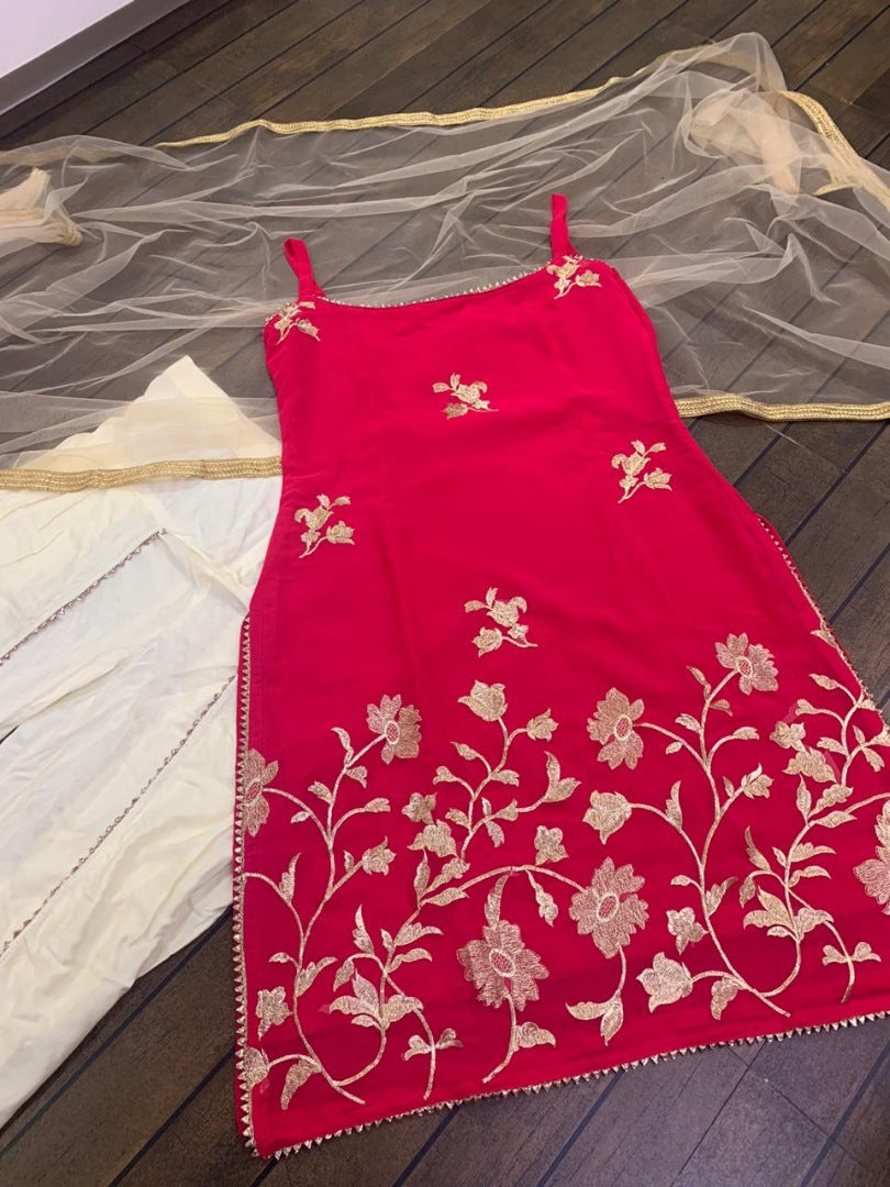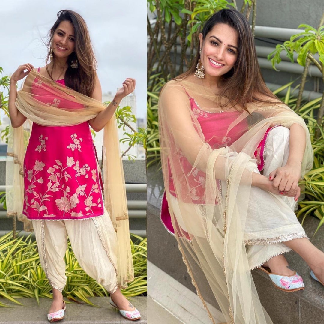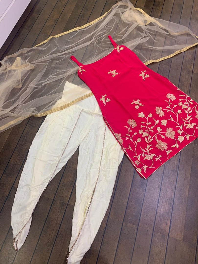 Pink and cream georgette embroidered dhoti suit