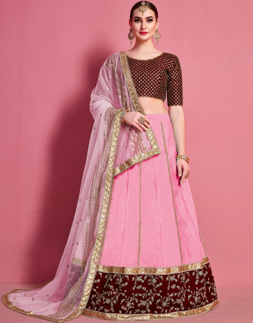 Pink art silk embroidered work Party wear lehenga choli
