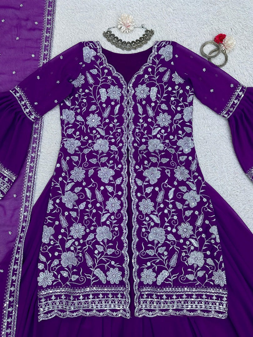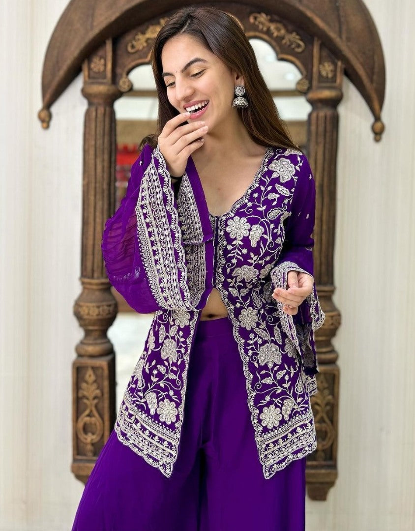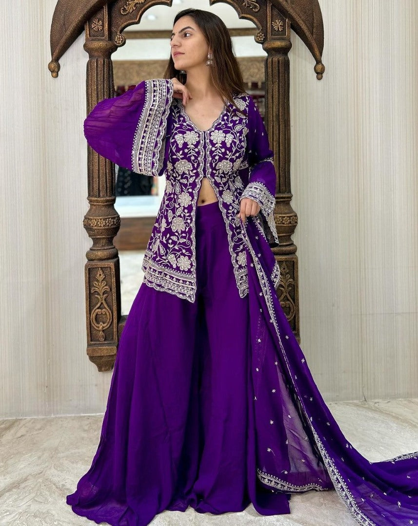 Purple georgette indowestern palazzo suit