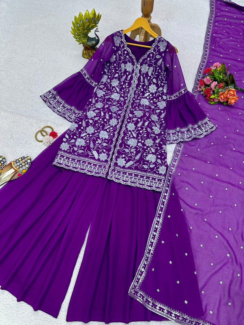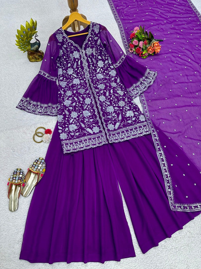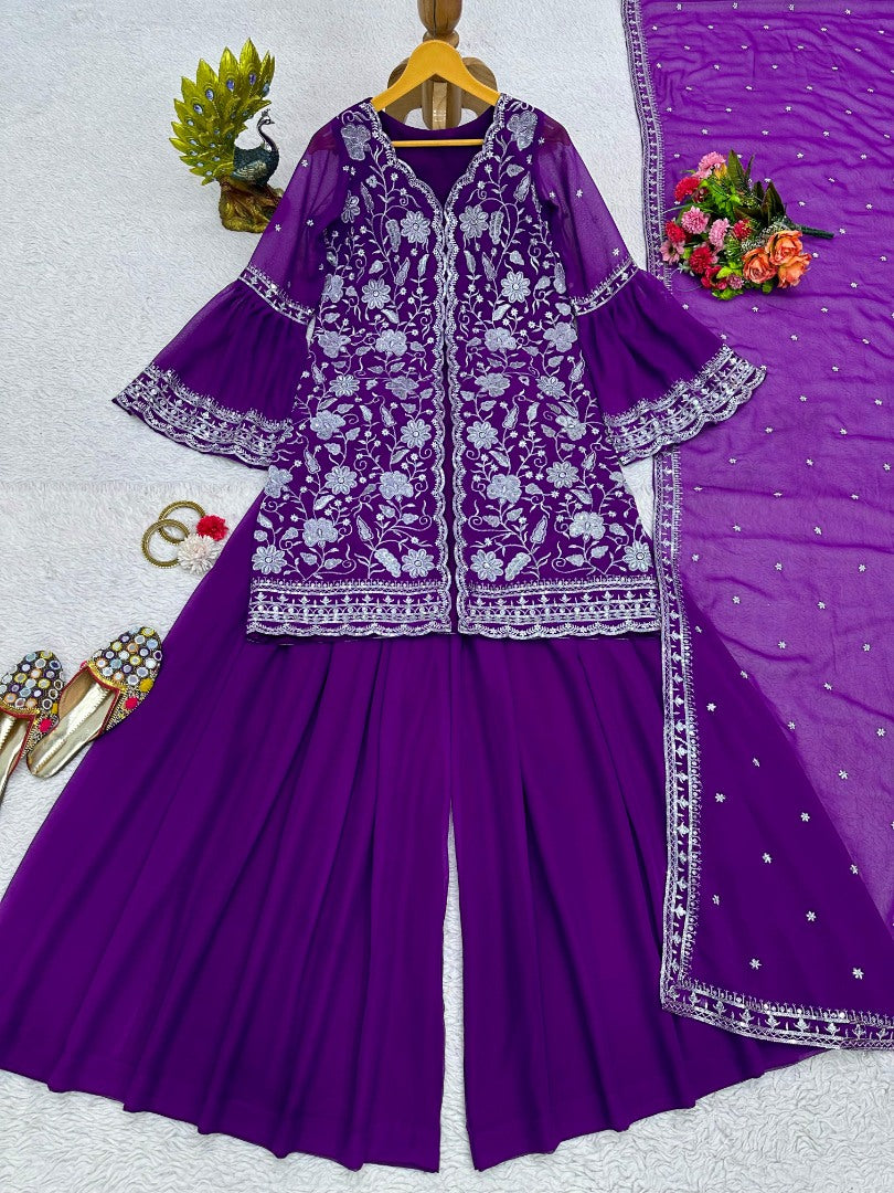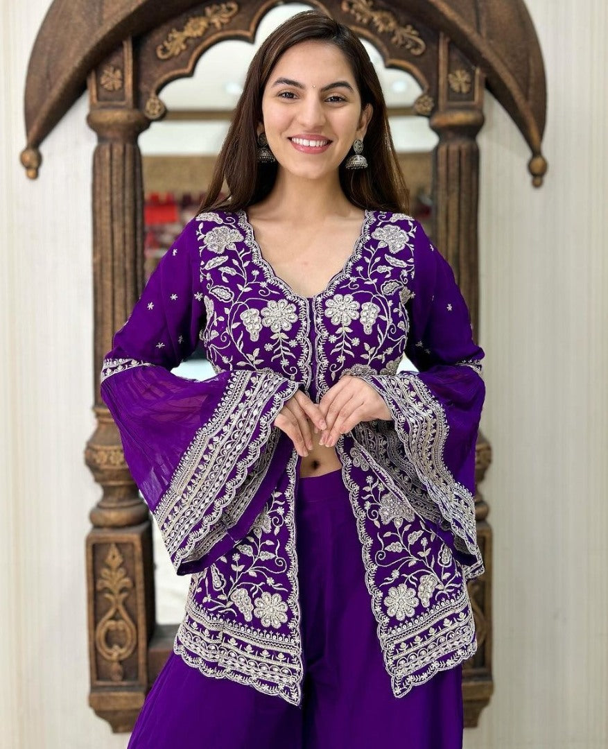 Purple georgette indowestern palazzo suit -