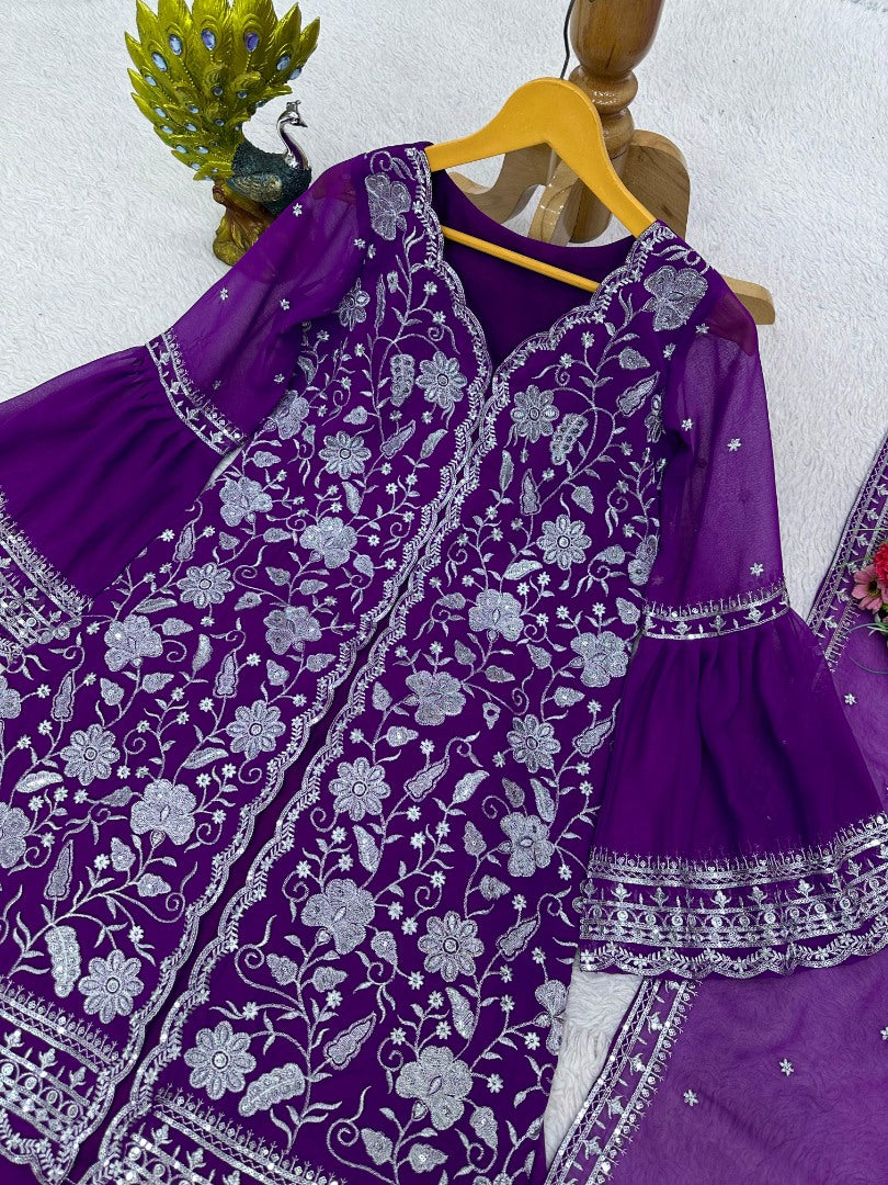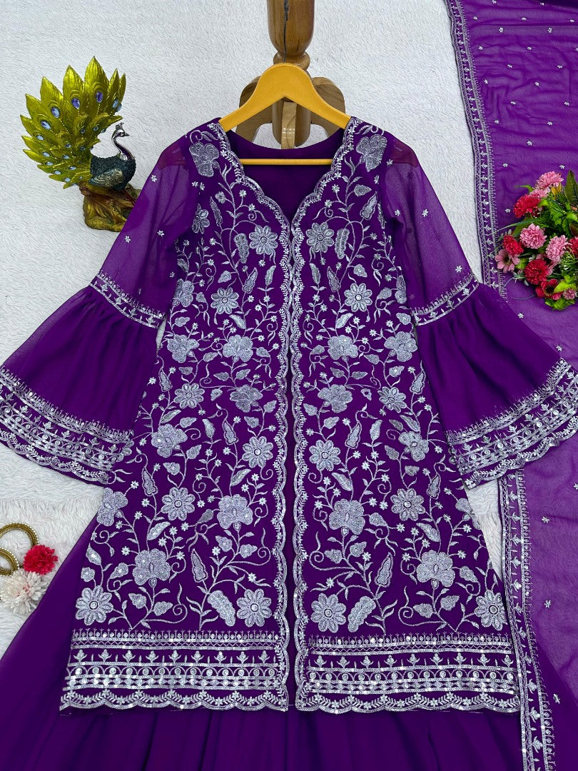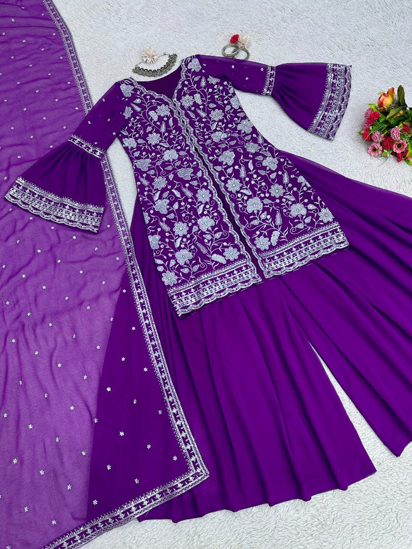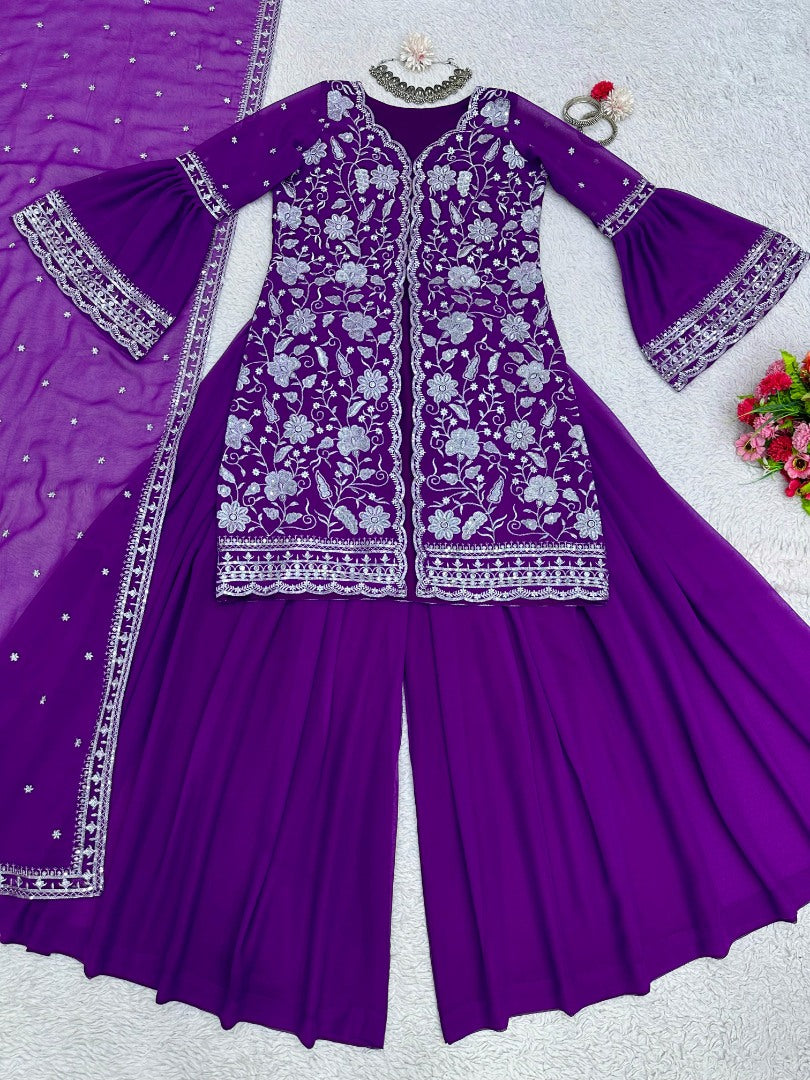 Purple georgette indowestern palazzo suit -