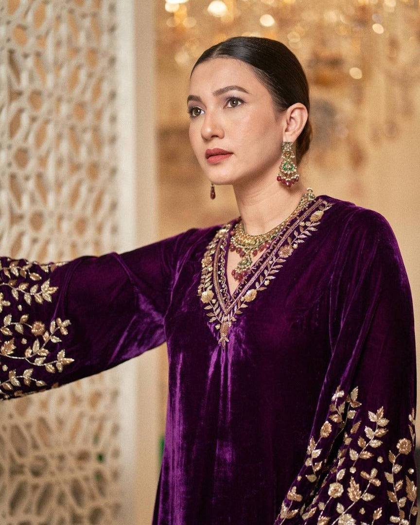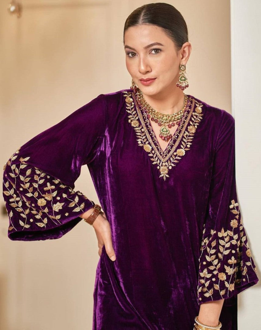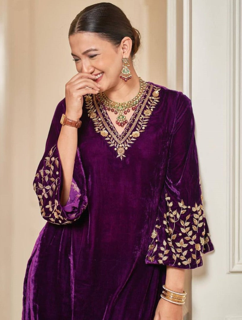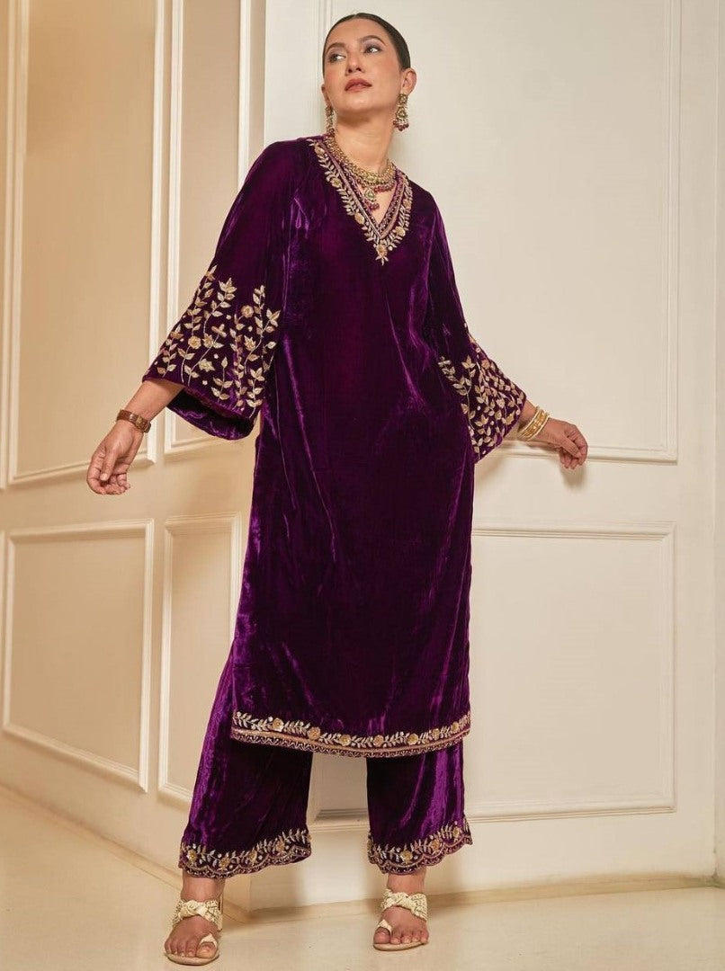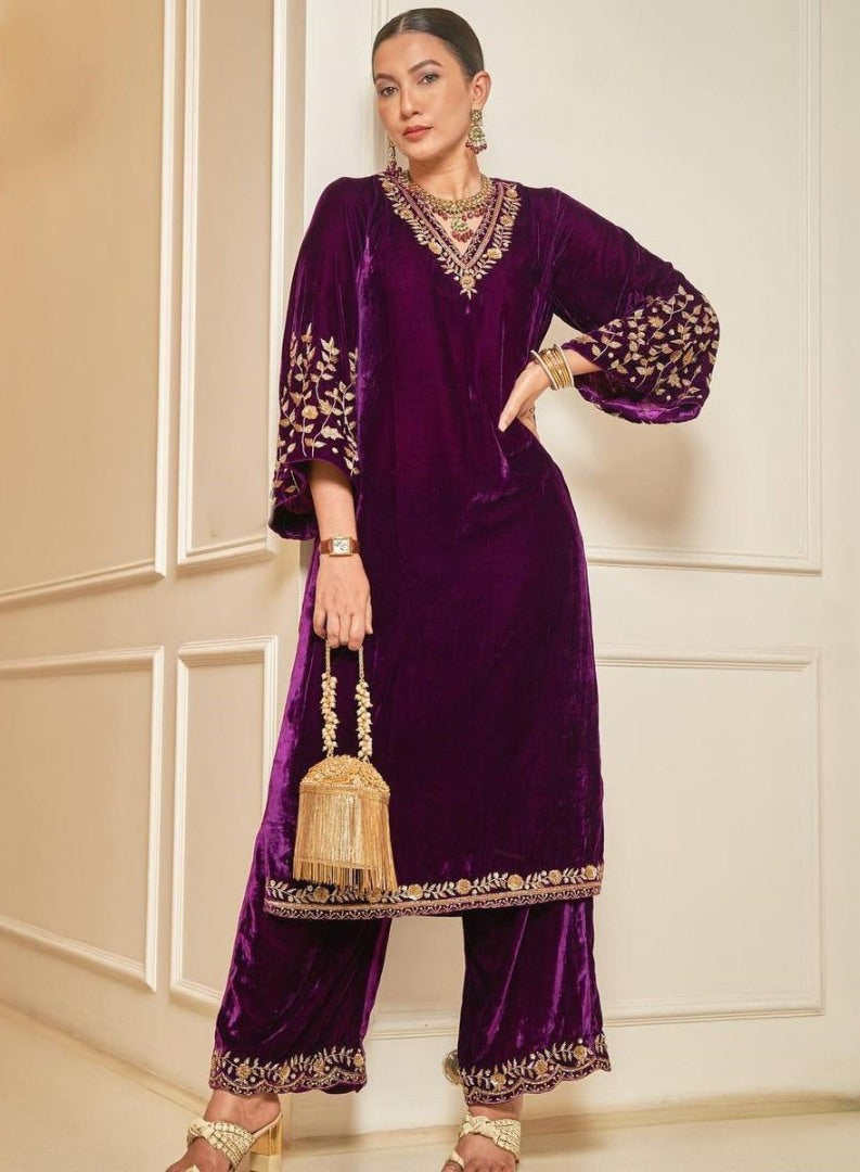 Plazzo: Heavy 9000 Velvet With Embroidery (Fully Stitched)