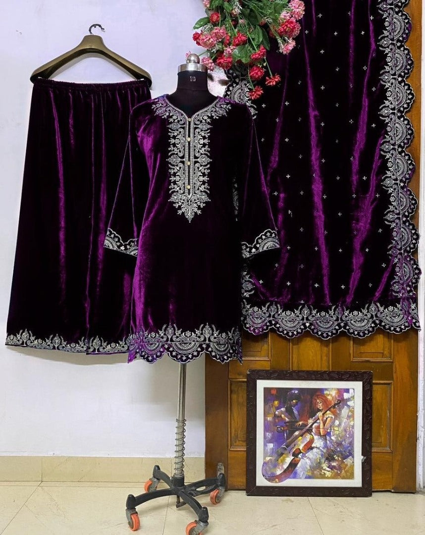 Plazzo: Heavy 9000 Velvet With Embroidery Work Fully Stitched