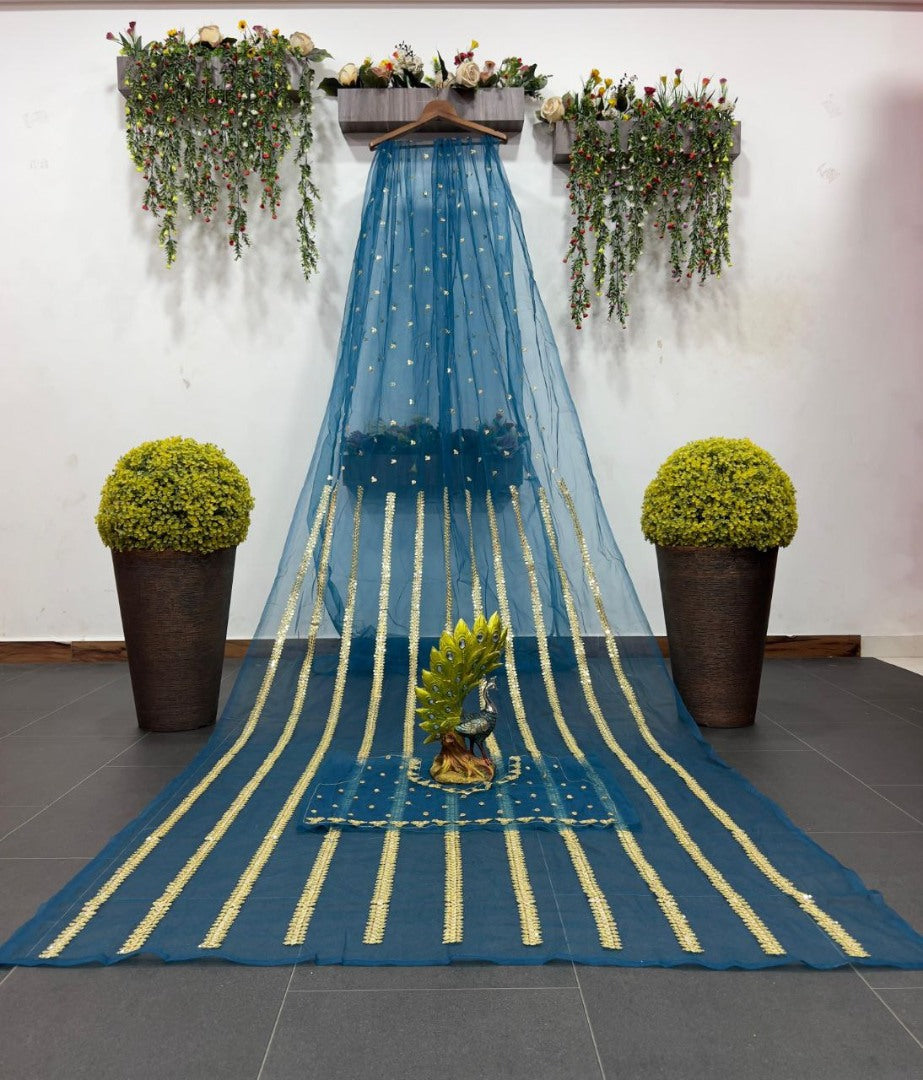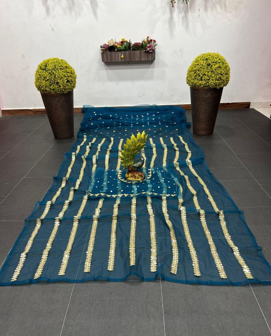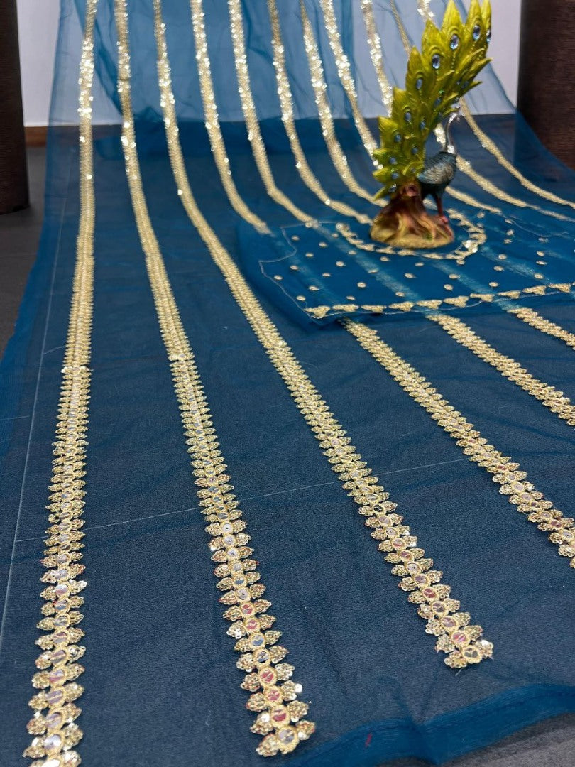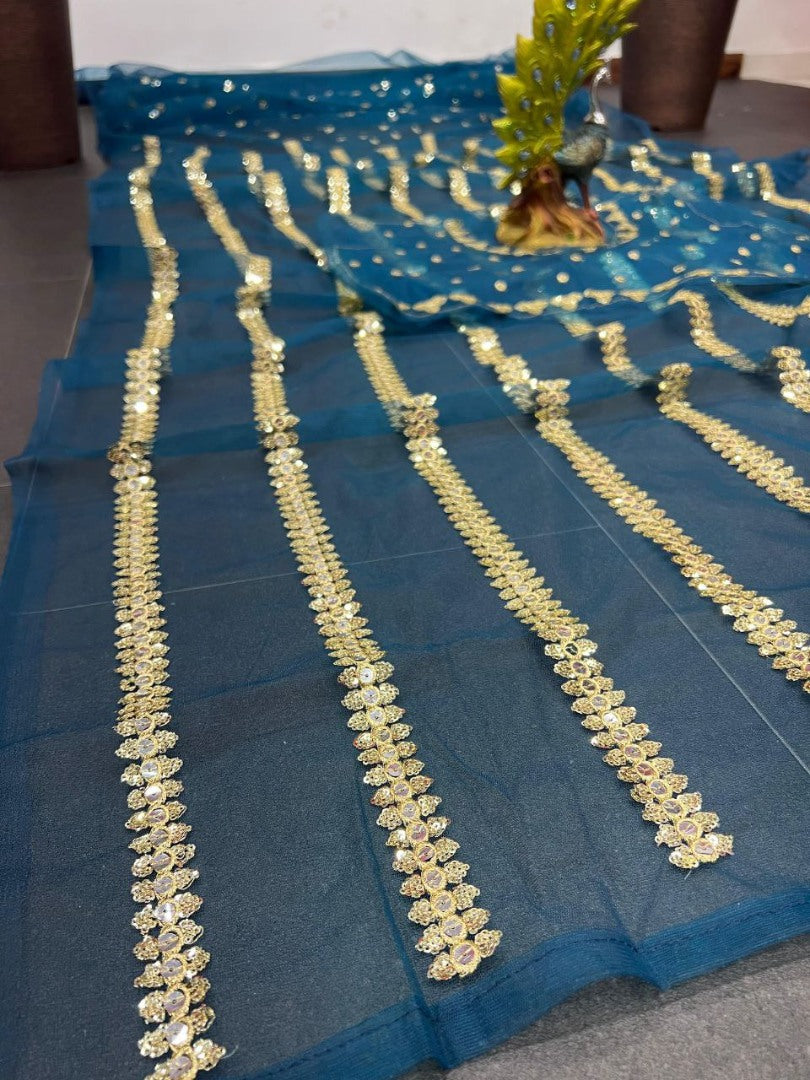Introducing our exquisite Rama Soft Net Heavy Sequence Work Designer Saree, a masterpiece of elegance and style. This saree is designed for the woman who appreciates the finer things in life and wants to make a statement with her attire.