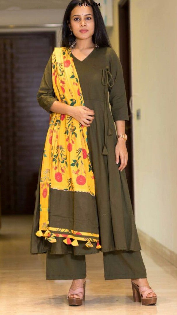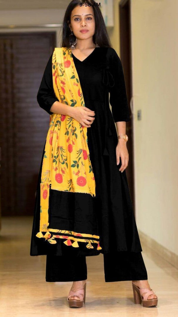 Rayon cotton plazzo kurti with printed dupatta