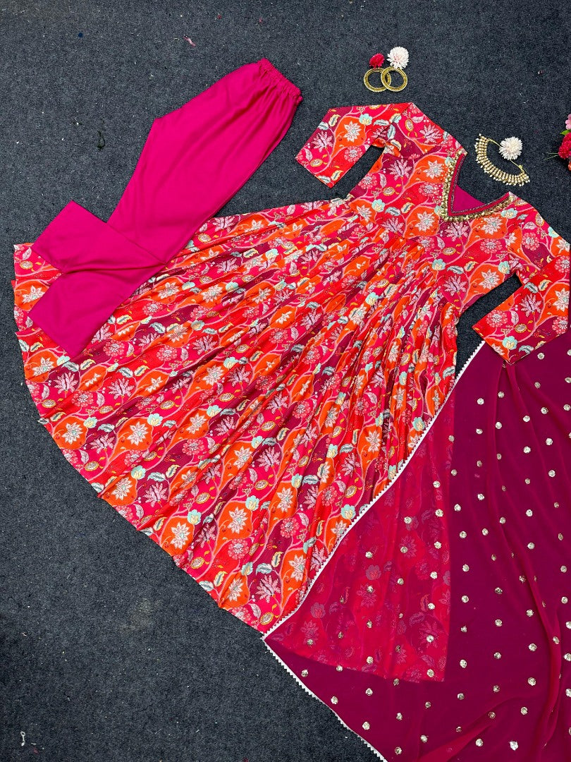 Upgrade your wardrobe with this Red Floral Printed Thread Sequence Work Designer Alia Cut Kurti and make a lasting impression wherever you go. Don't miss out on this stylish and comfortable addition to your collection. Order now and be the center of attention at every event!