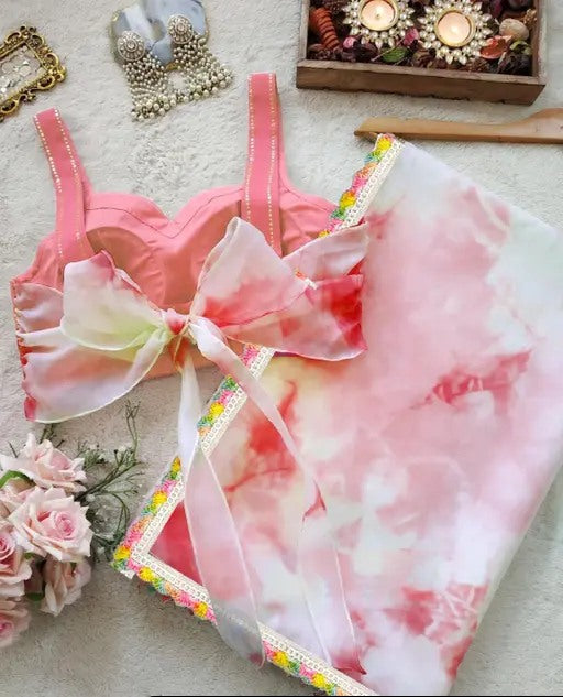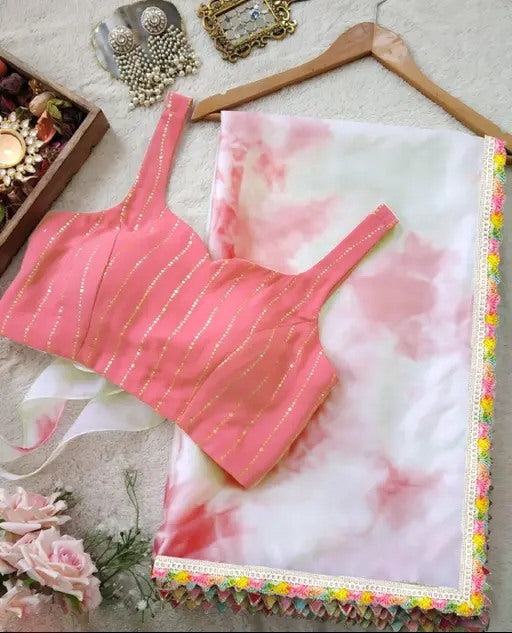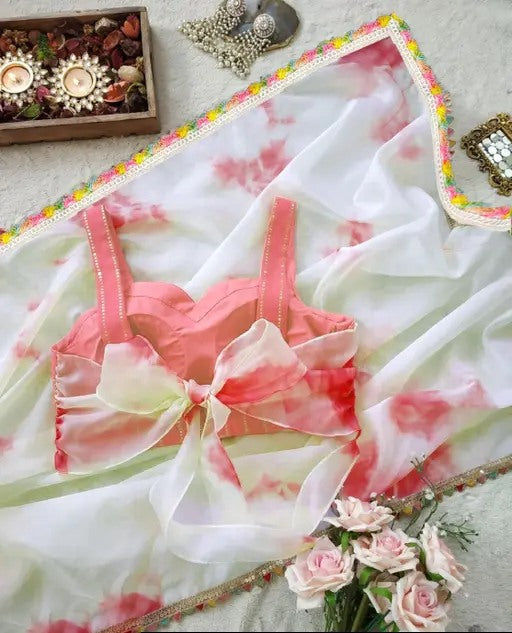 - Type: Woman Printed Organza Saree, Party Wear Saree, Bollywood Saree, Shibori Printed Saree