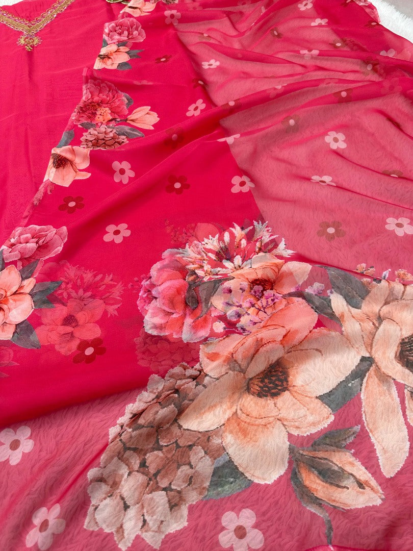 Introducing our ravishing Red Tibby Silk Unstitched Salwar Suit, crafted for elegance and grace. Made from luxurious Tibby Silk with inner lining, the suit features exquisite threadwork, sequins, and digital prints, adding a touch of sophistication to your ensemble. Available in unstitched size up to 50 with a length of 41 inches, this suit offers versatility and comfort. Complete your look with the accompanying extra half sleeve for added flair. The ensemble is complemented by a stunning Tibby Silk Dupatta featuring mesmerizing digital prints. Elevate your ethnic wardrobe with this timeless piece, perfect for any special occasion or celebration. Experience luxury and style with every wear.