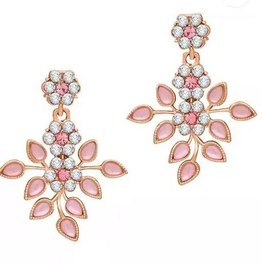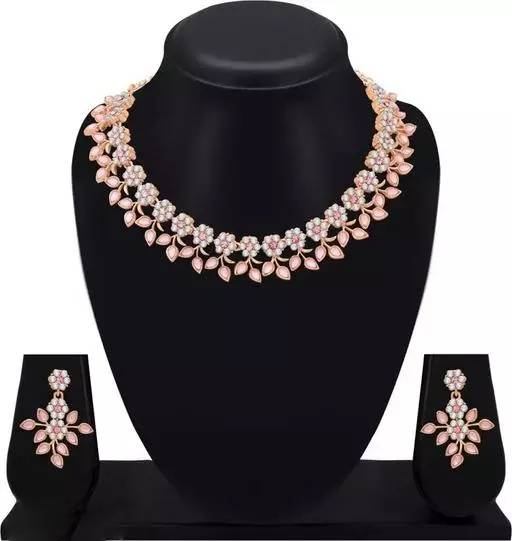 Rose gold copper cubic zirconia american diamond necklace with earrings -