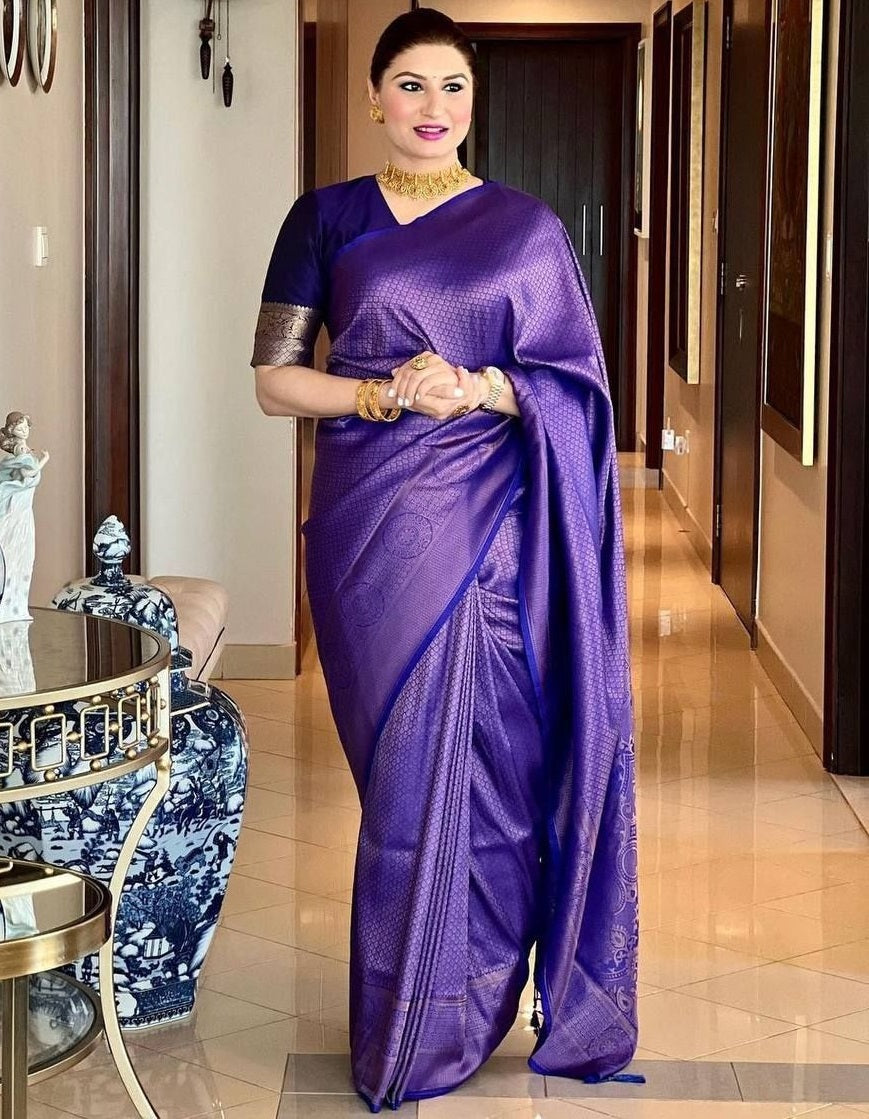 Royal blue banarasi lichi silk jacquard stylish party wear saree