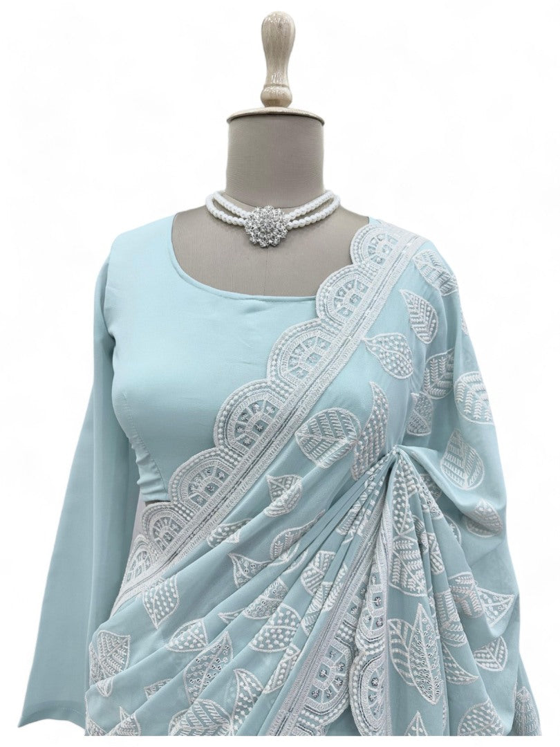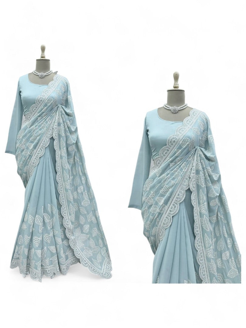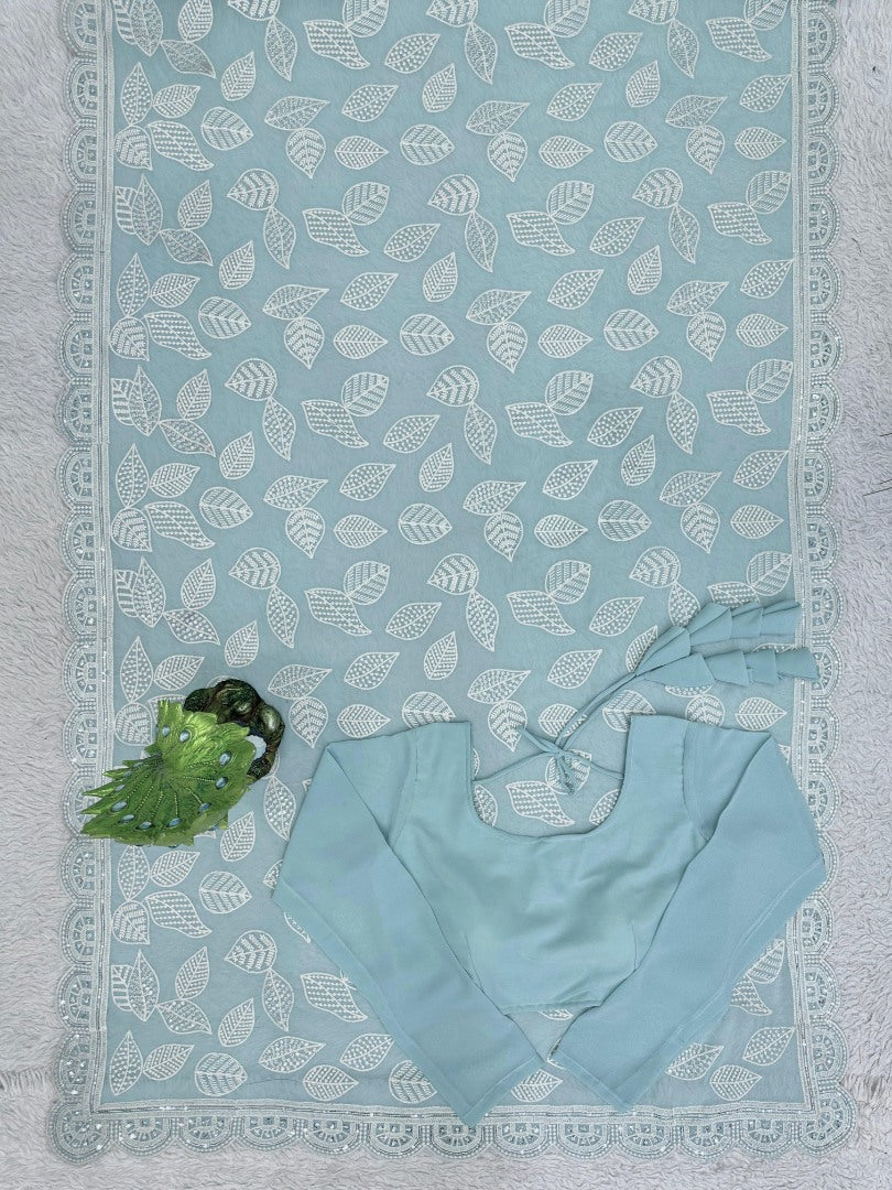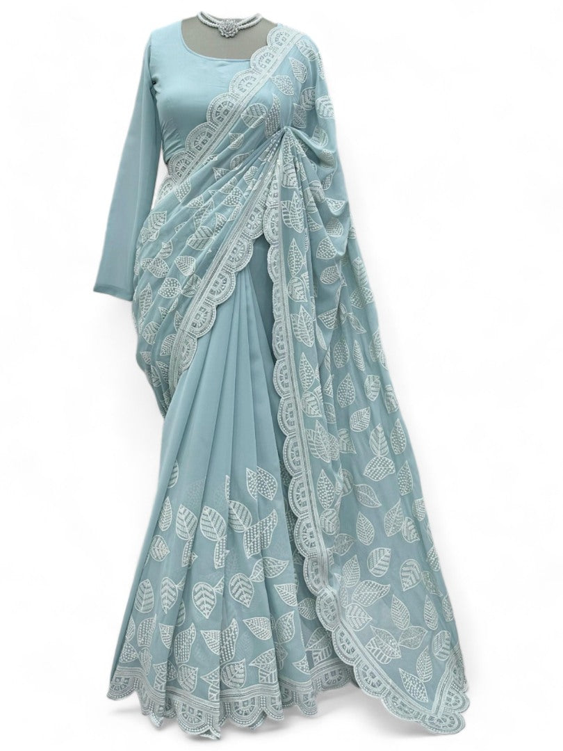 Elevate your ethnic style with our stunning Sea Green Thread Sequence Work Designer Saree. Crafted from luxurious Faux Georgette fabric, this saree boasts intricate thread and sequence work, adding a touch of glamour to your ensemble. The saree comes with a matching blouse piece made from Faux Georgette with inner lining for added comfort. Perfect for weddings, parties, or festive occasions, this saree is sure to make you stand out in the crowd. Shop now and make a statement with your timeless elegance and impeccable style!