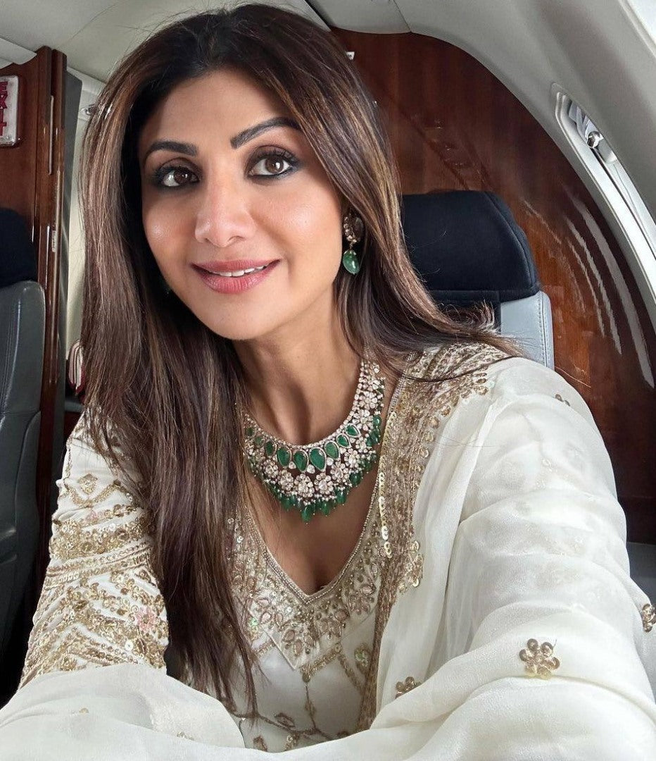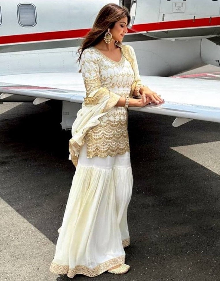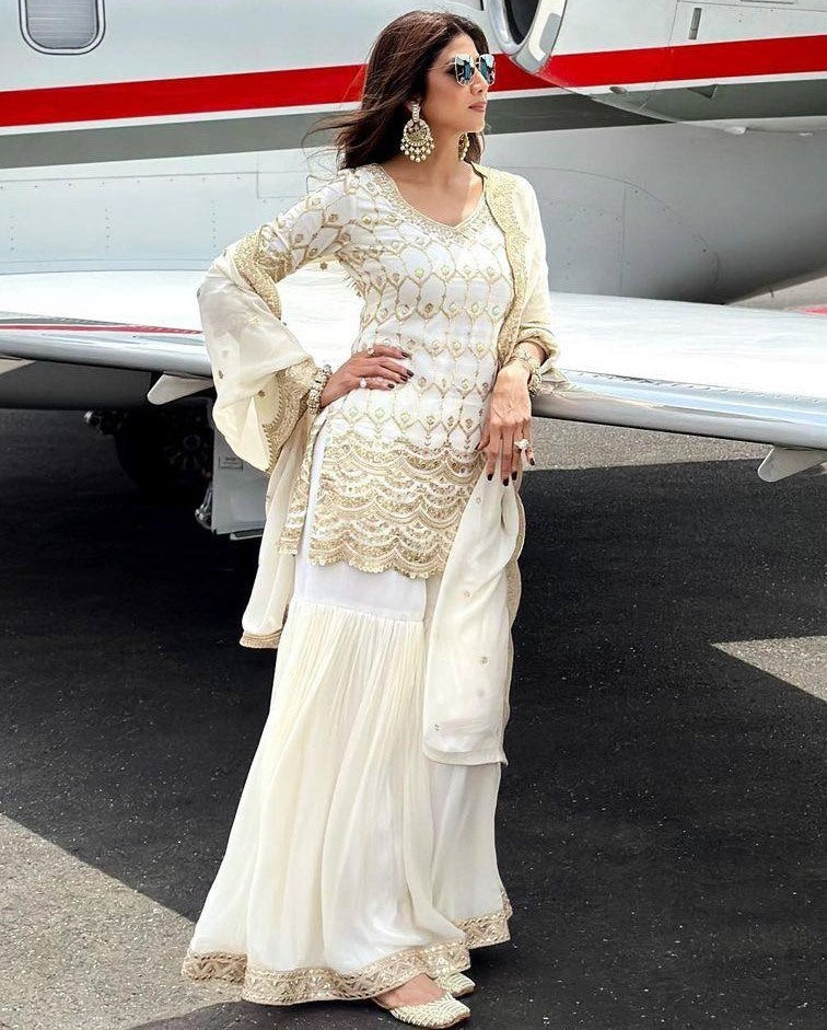 Shilpa shetty white heavy sequence work bollywood sharara suit