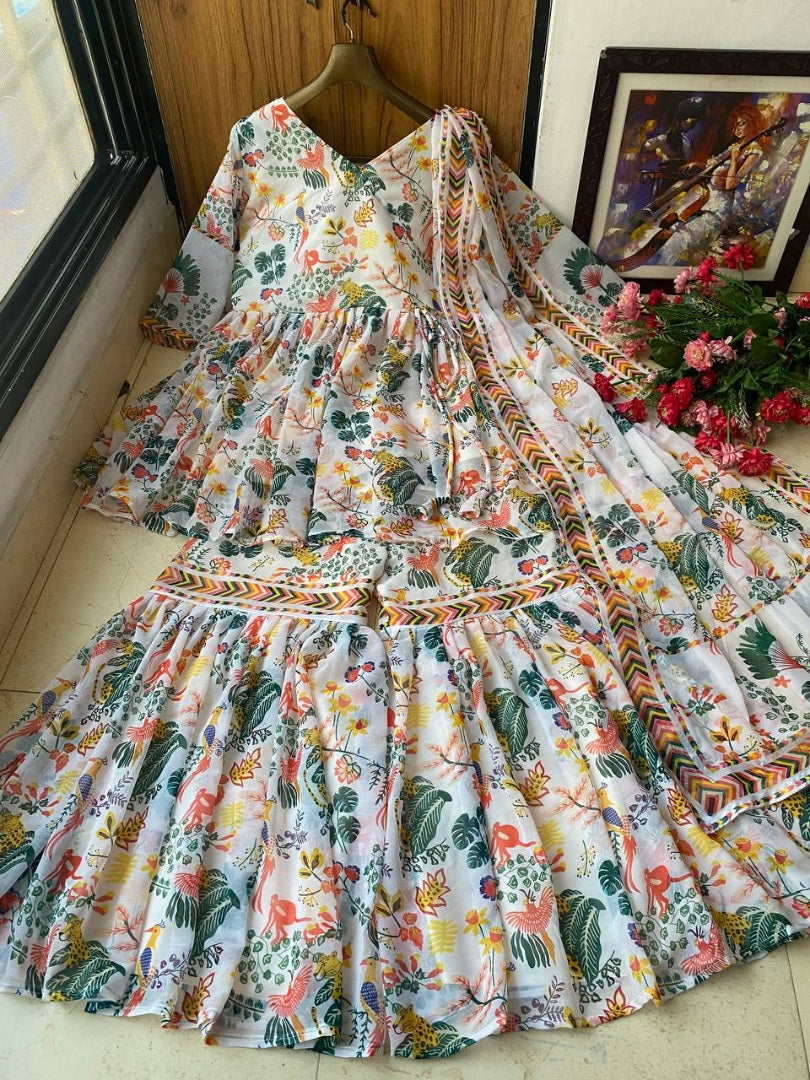 Sharara: Heavy Georgette With Digital Print (Fully Stitched)
