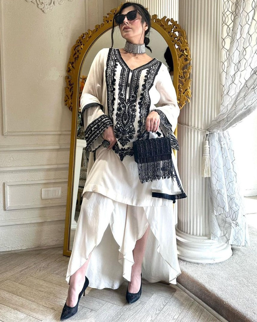 White georgette thread work designer indowestern suit -
