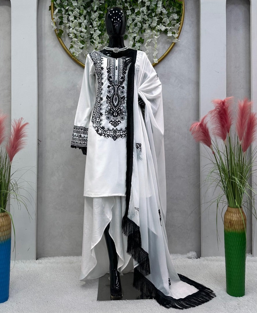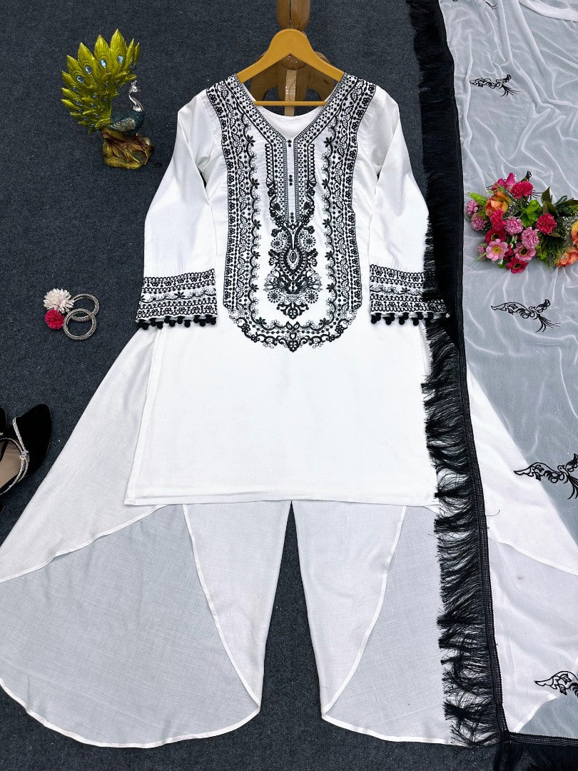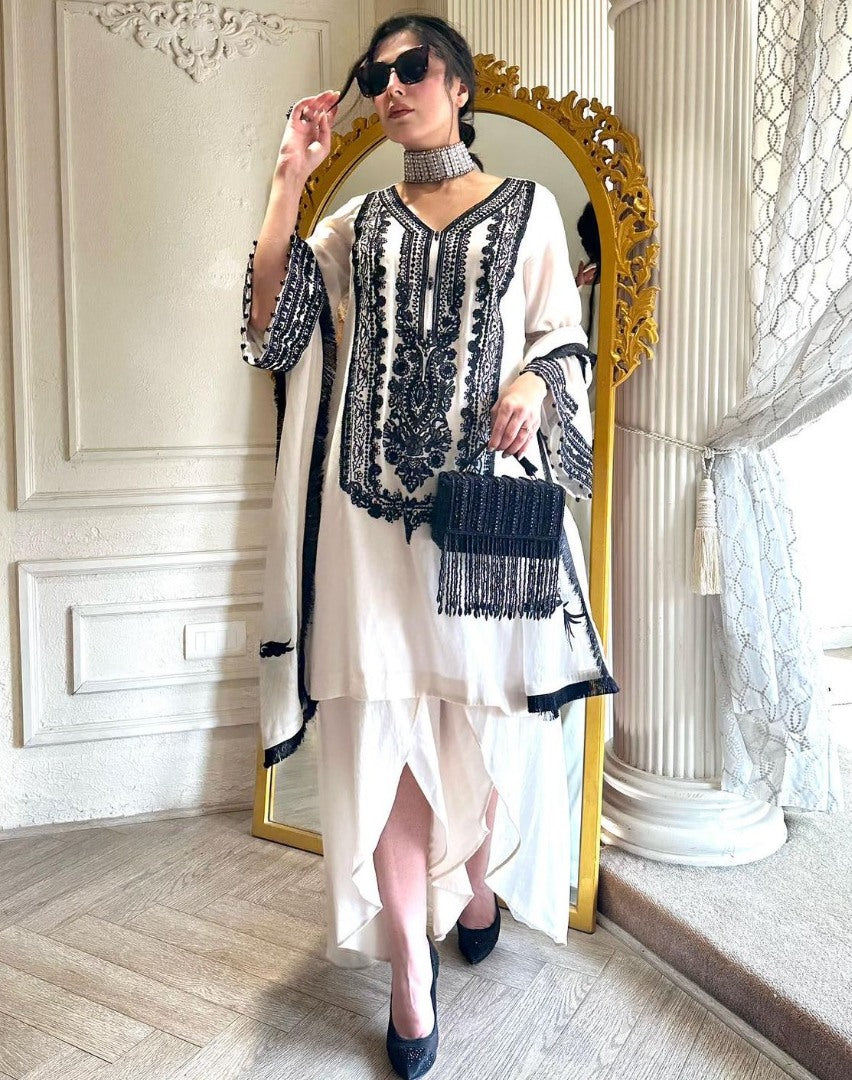 White georgette thread work designer indowestern suit