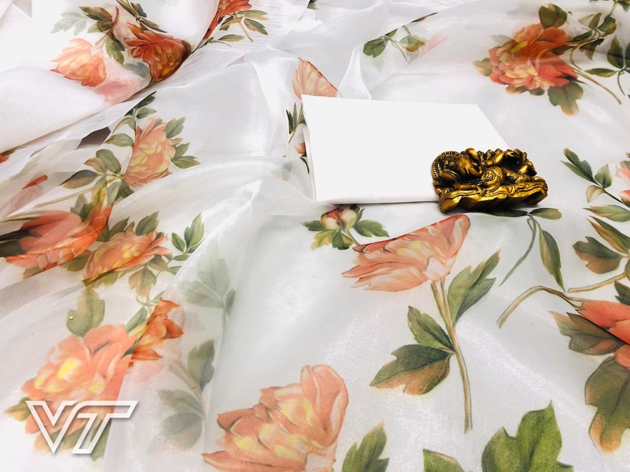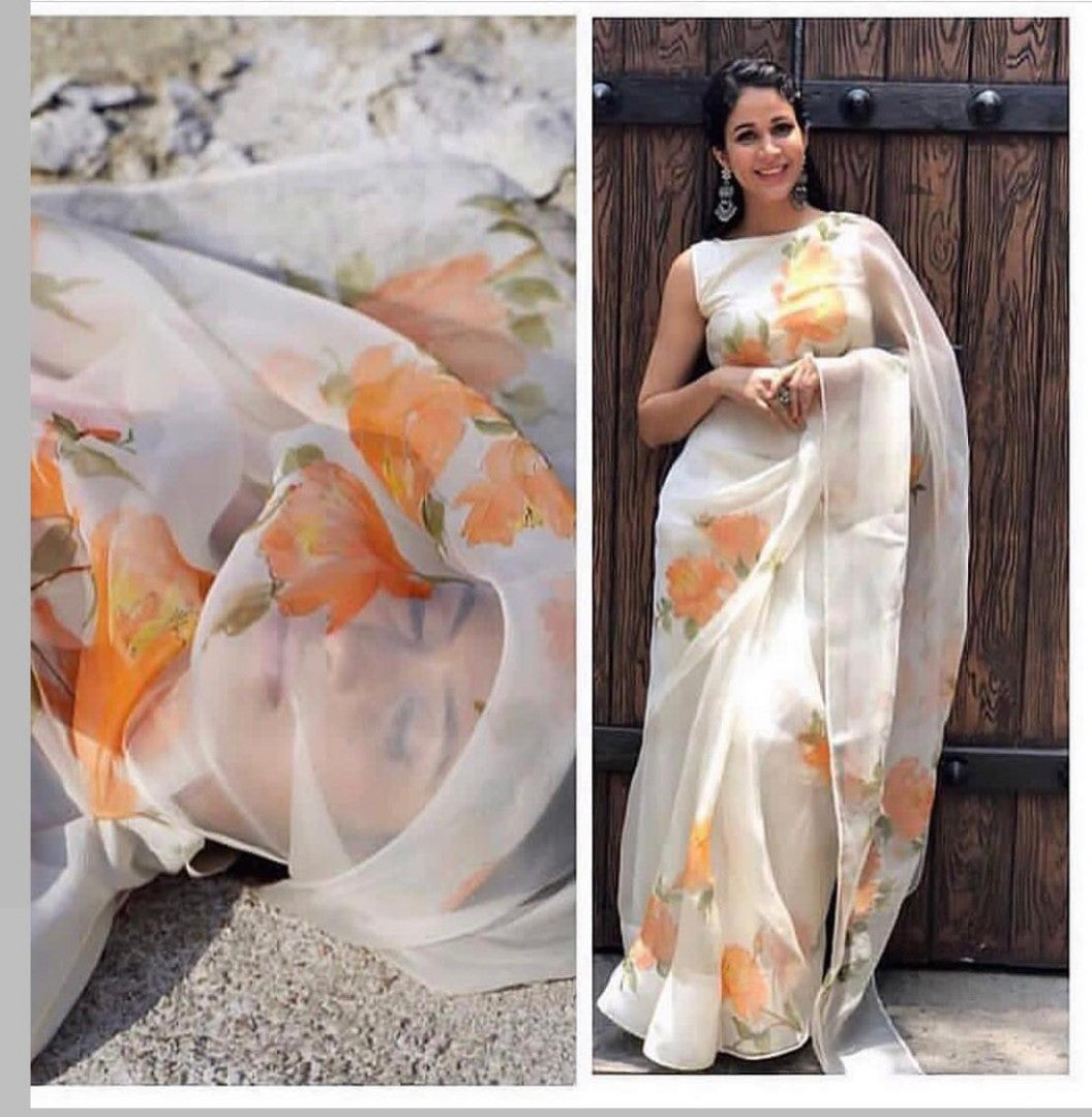 white orgenza net digital printed saree
