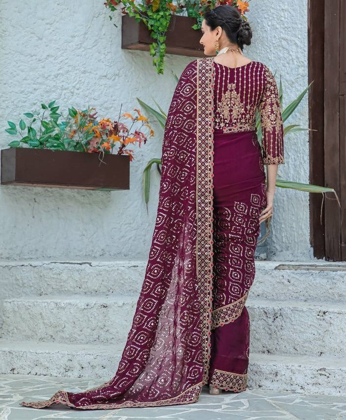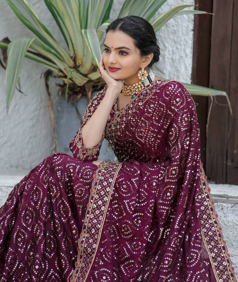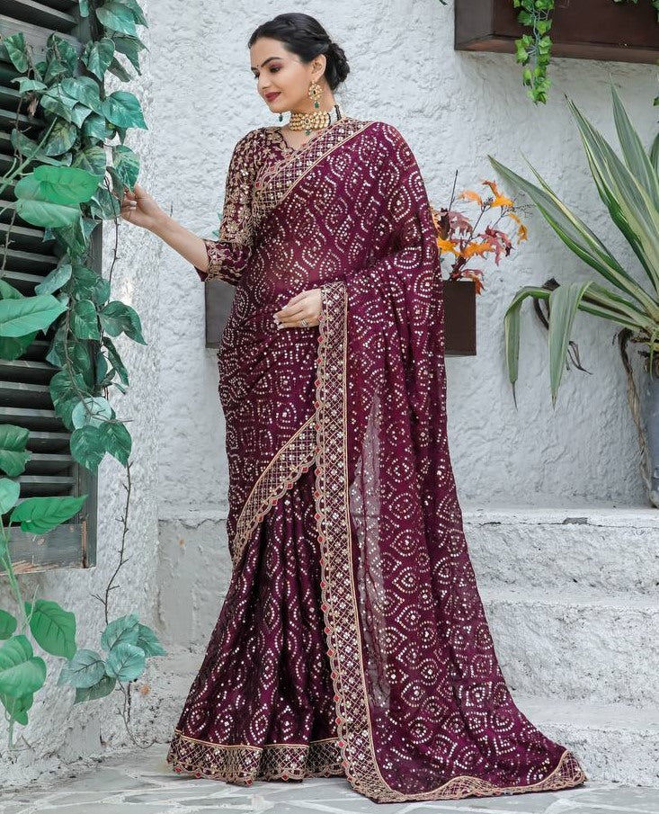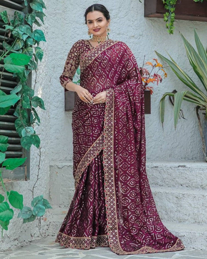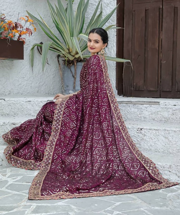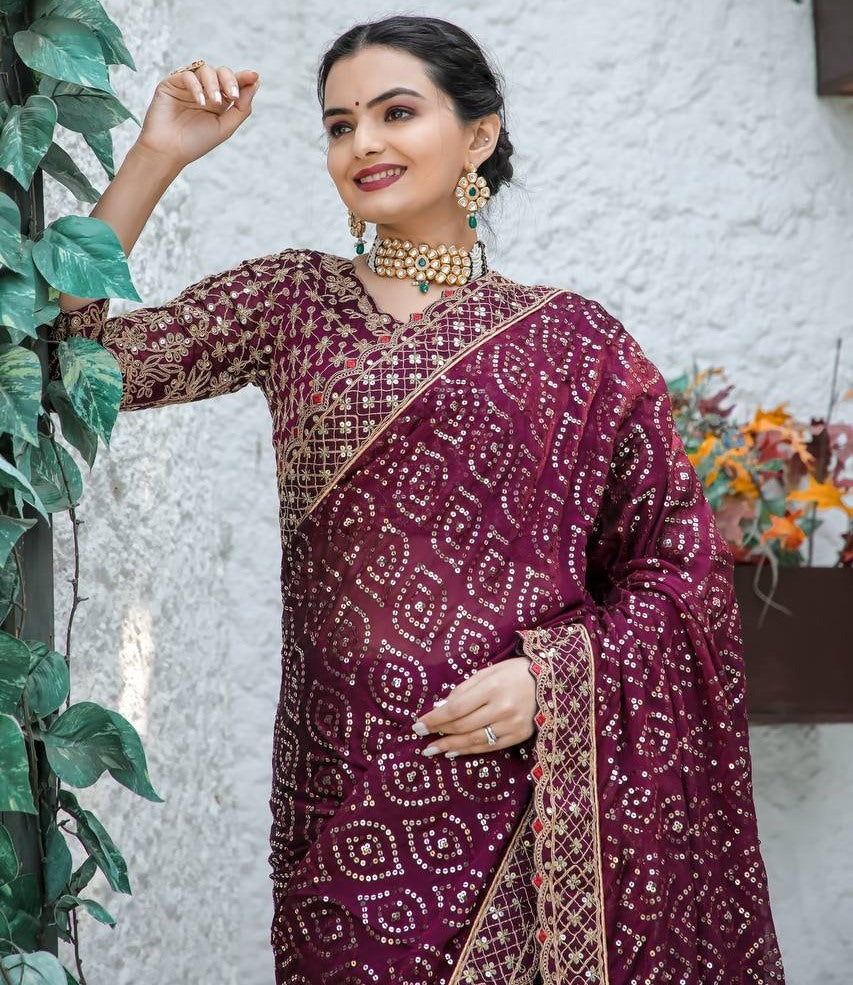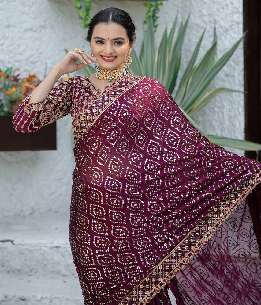 Heavy Kasturi Silk Georgette Saree With Sequins, Dori & Zari Work